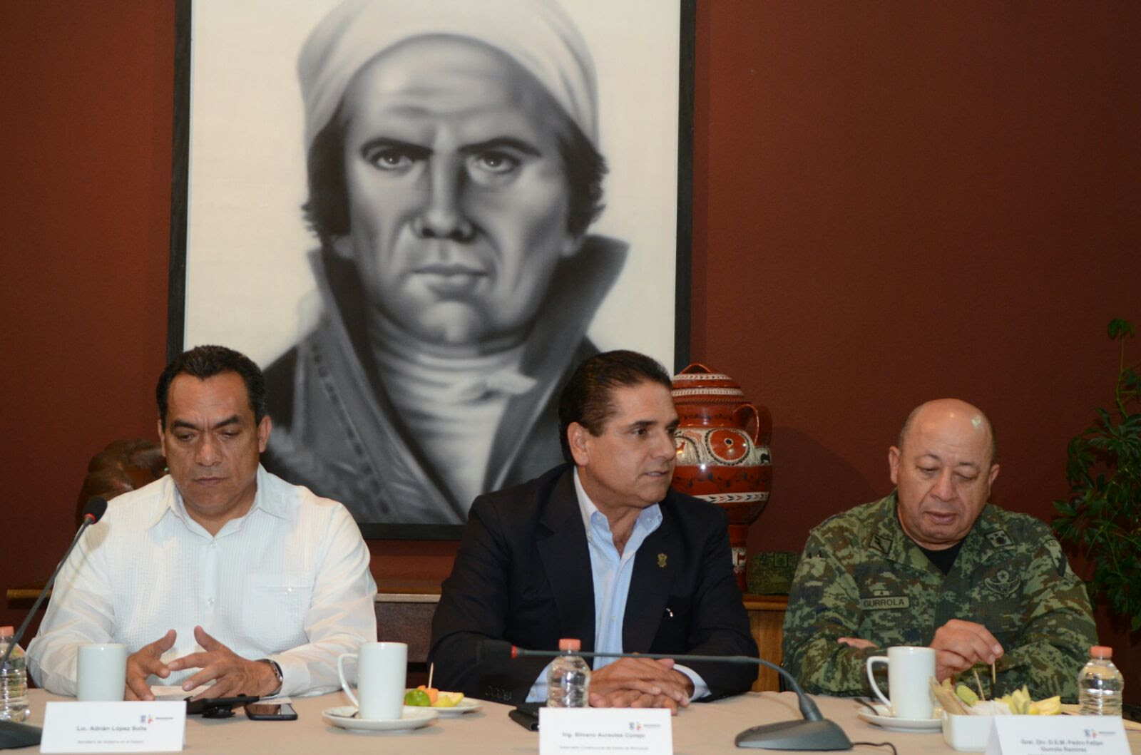 Estuvieron presentes en esta reunión, el secretario de Gobierno, Adrián López Solís; el secretario de Seguridad Pública, José Antonio Bernal Bustamante; el procurador general de Justicia, José Martín Godoy Castro; el delegado de la Segob, Florentino Coalla Pulido; el delegado del CISEN, René Rodríguez Oviedo; la delegada de la PGR, Bertha Paredes Garduño; el comandante de la 21 Zona Militar, general José Francisco Morales Cázares; el comandante de la 43 Zona Militar, general Ricardo Díaz Palacios y el comisario de la Policía Federal en la entidad, Israel Galván Jaime.