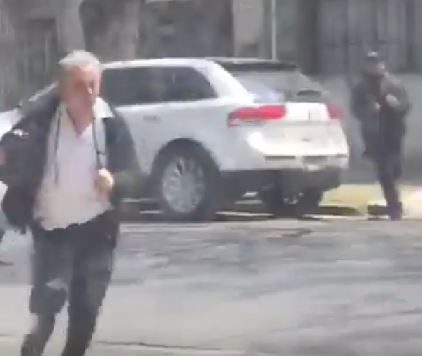 Al parecer el hombre intentaba evitar que le fueran robados casi 100 mil pesos, mientras que otro (el asaltante) con pistola en mano lo trata de alcanzar.