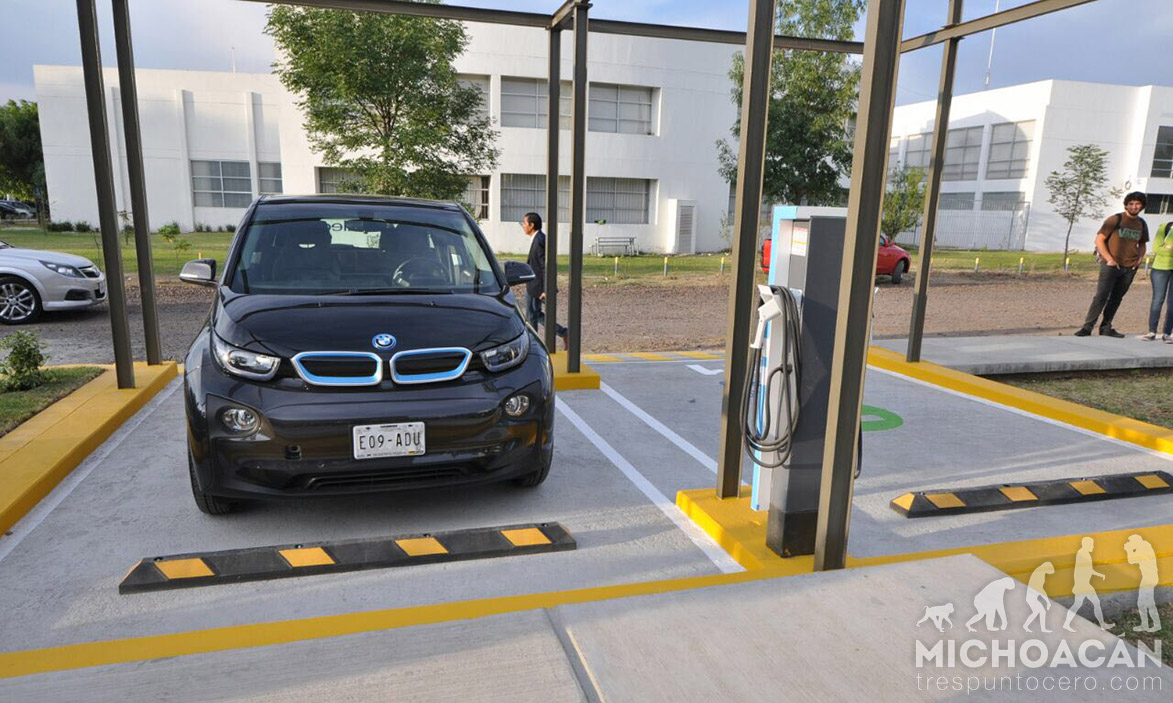 Morelia, Michoacán.-Las instalaciones de la Universidad Michoacana de San Nicolás de Hidalgo (UMSNH) se convirtieron en la primera estación de carga de vehículos eléctricos que se instala en la entidad, la cual permitirá la carga de dos unidades.