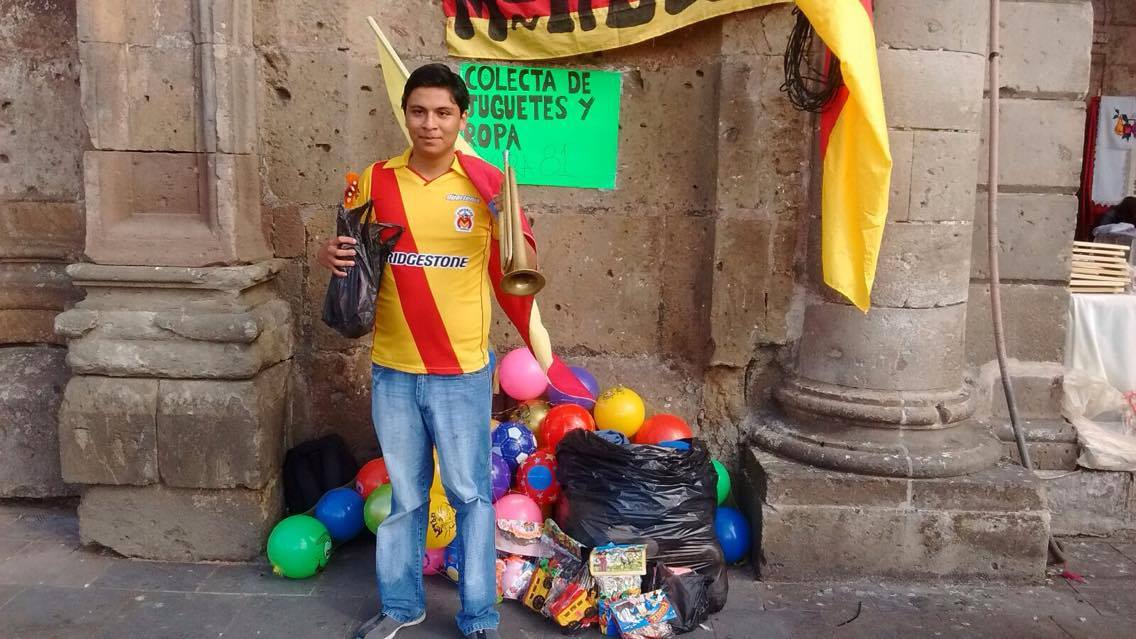 Morelia, Michoacán.- La barra del Morelia “locura 81”, lleva acabo una colecta de juguetes y cobijas para las colinas marginadas de la capital del estado. Como una labor social, y para acabar con el estereotipo que se les tiene como aficionados del fútbol, la barra del Monarcas Morelia, de forma independiente, ha decidido poner un centro de acopio en la plaza Valladolid.