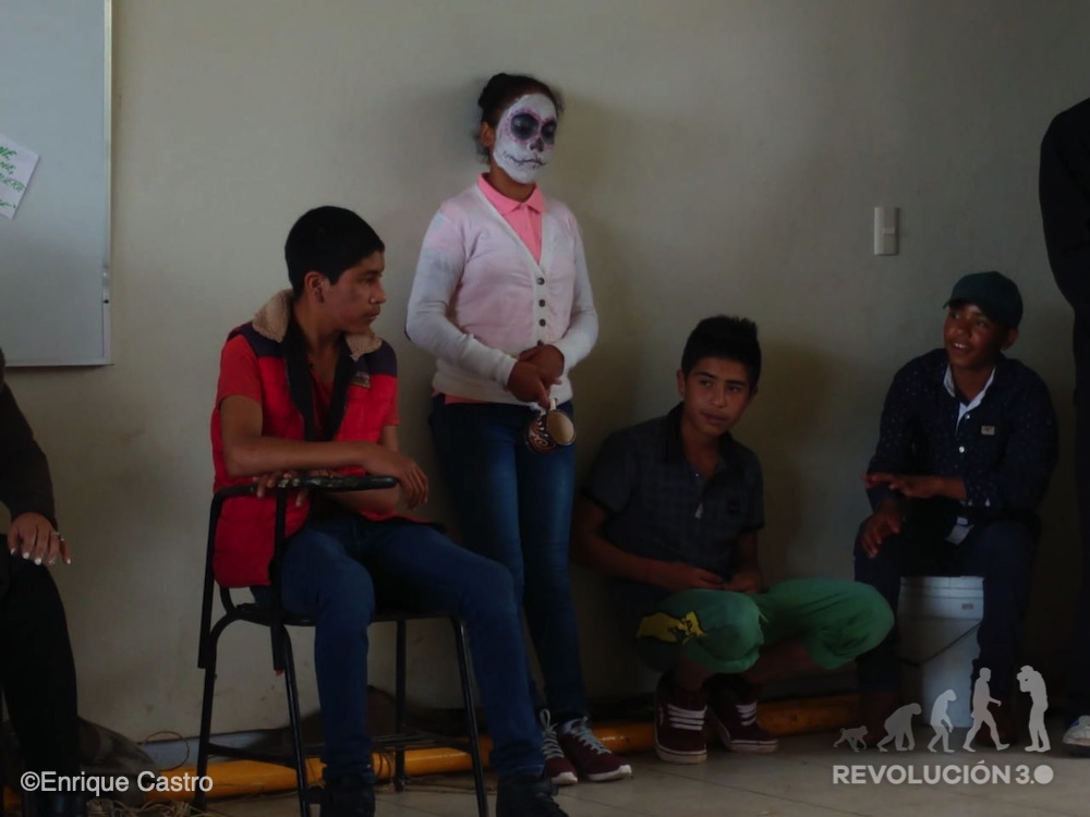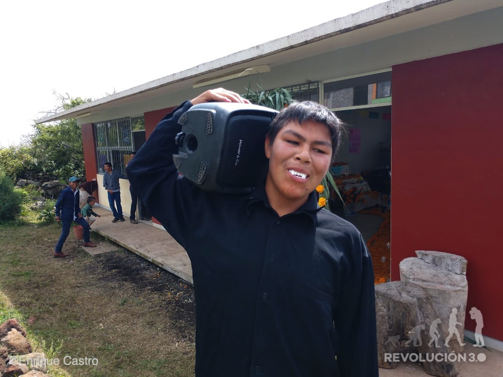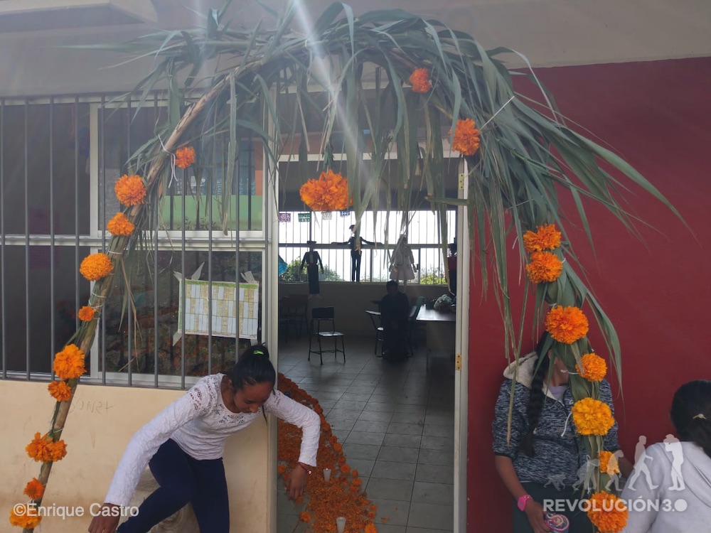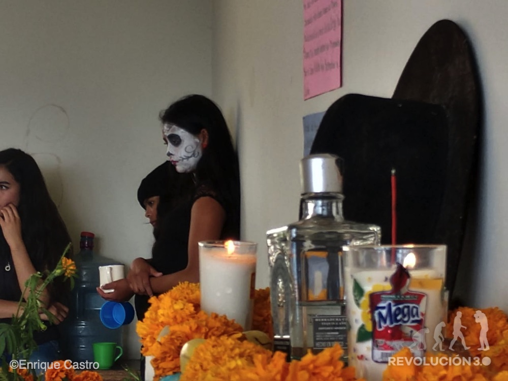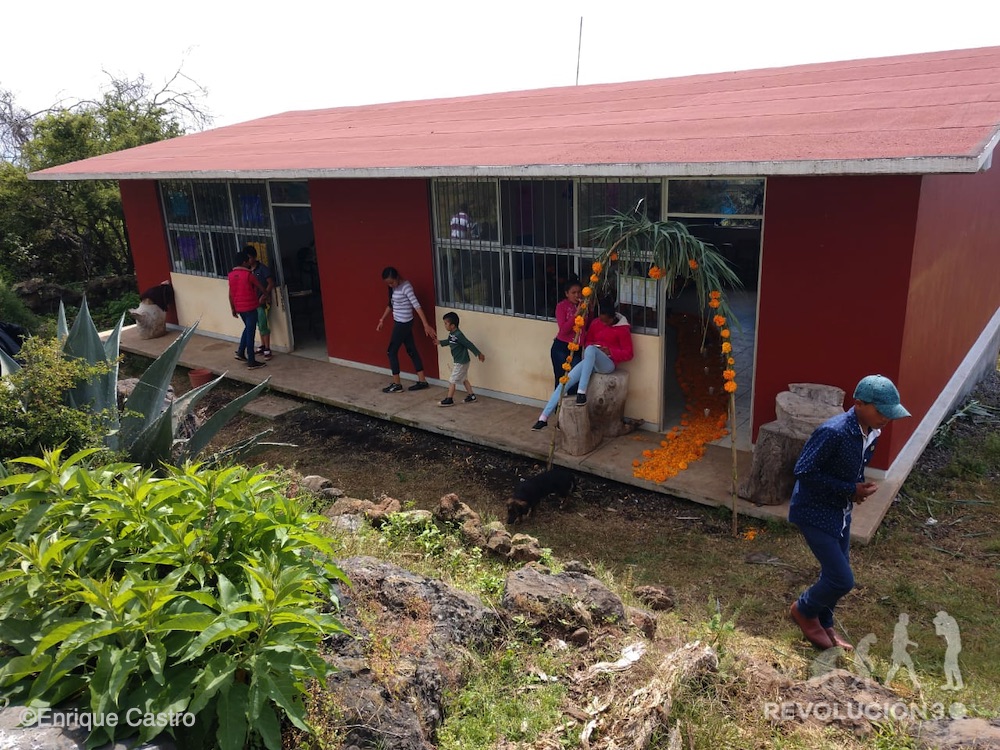 Sin luz, ni agua, sin barda perimetral y sin nombre, la Telesecundaria “de palitos” ubicada en la comunidad de Las Flores en lo alto del cerro del Quinceo en Morelia, realizó su altar de muertos y una taquiza para celebrar la noche de las animas.