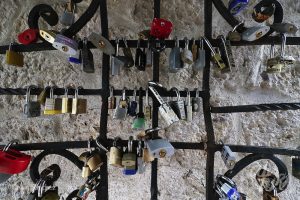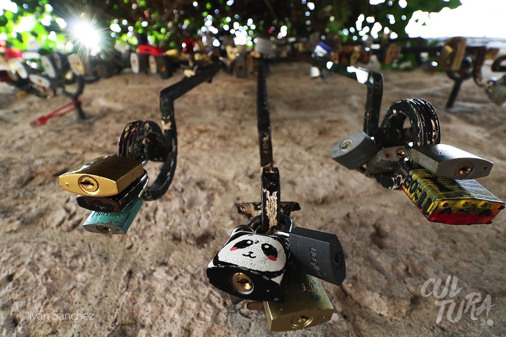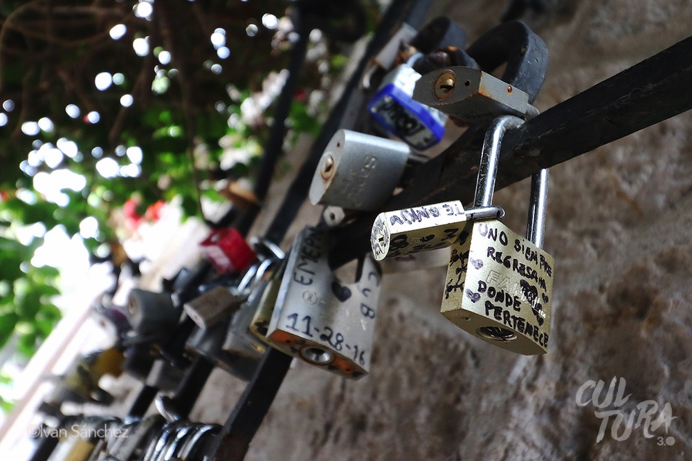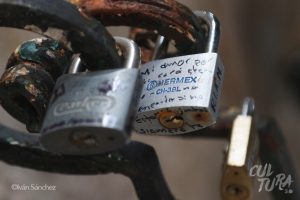 Las leyendas con distintas muestras de amor son escritas en los candados. Uno en particular sobresale porque su costo de 55 pesos aún se muestra, aunque hay otro candado de mayor seguridad por si el amarre del primero se viera vulnerado.