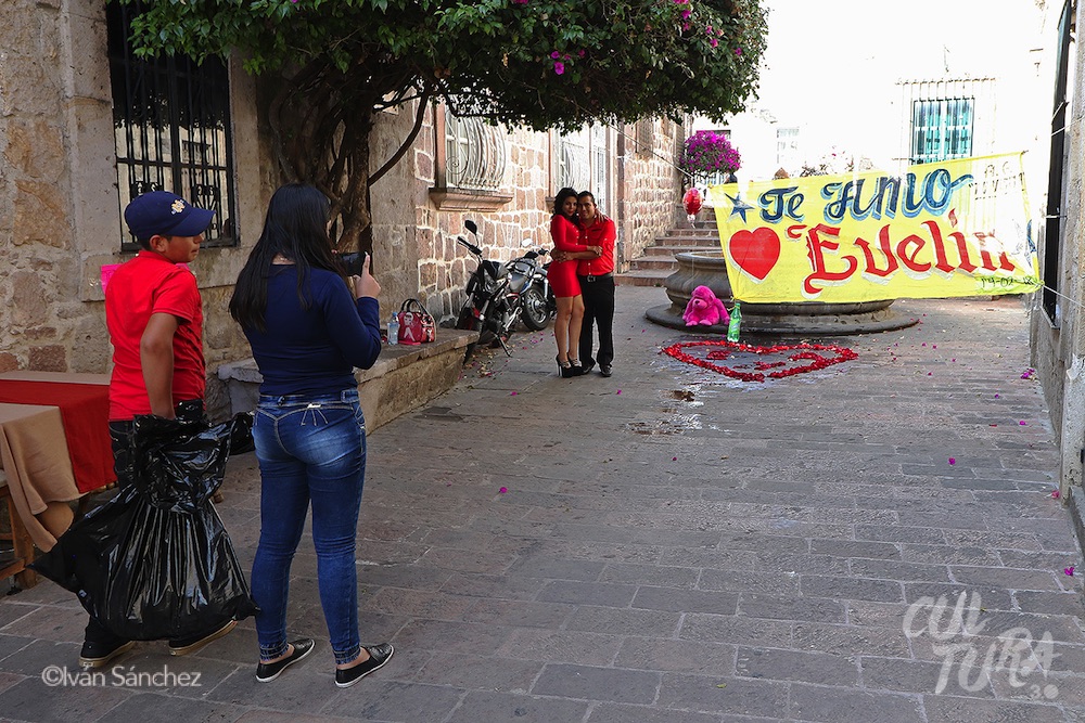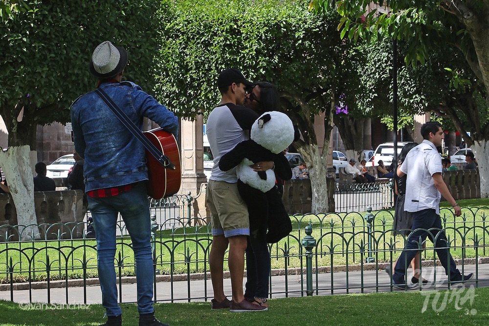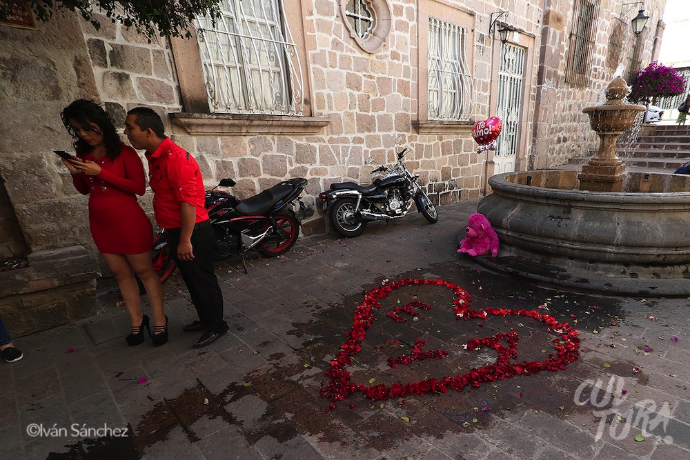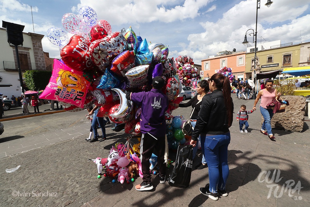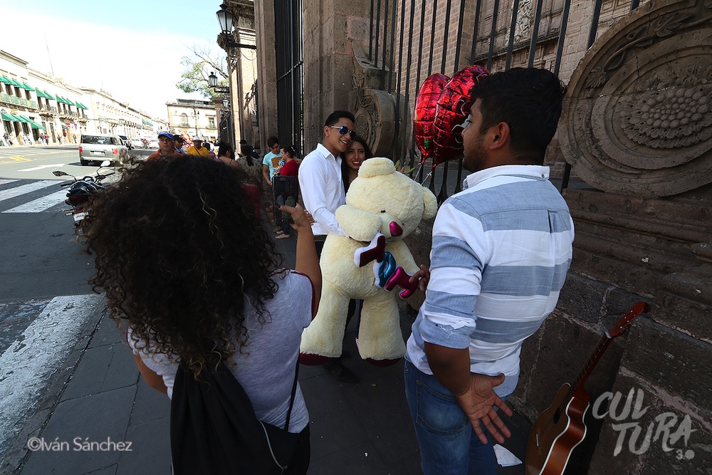 Desde peluches, globos y flores, hasta botargas, candados de “amarre” o serenatas en la calle, se pueden observar por las calles del primer cuadro del Centro Histórico de Morelia.