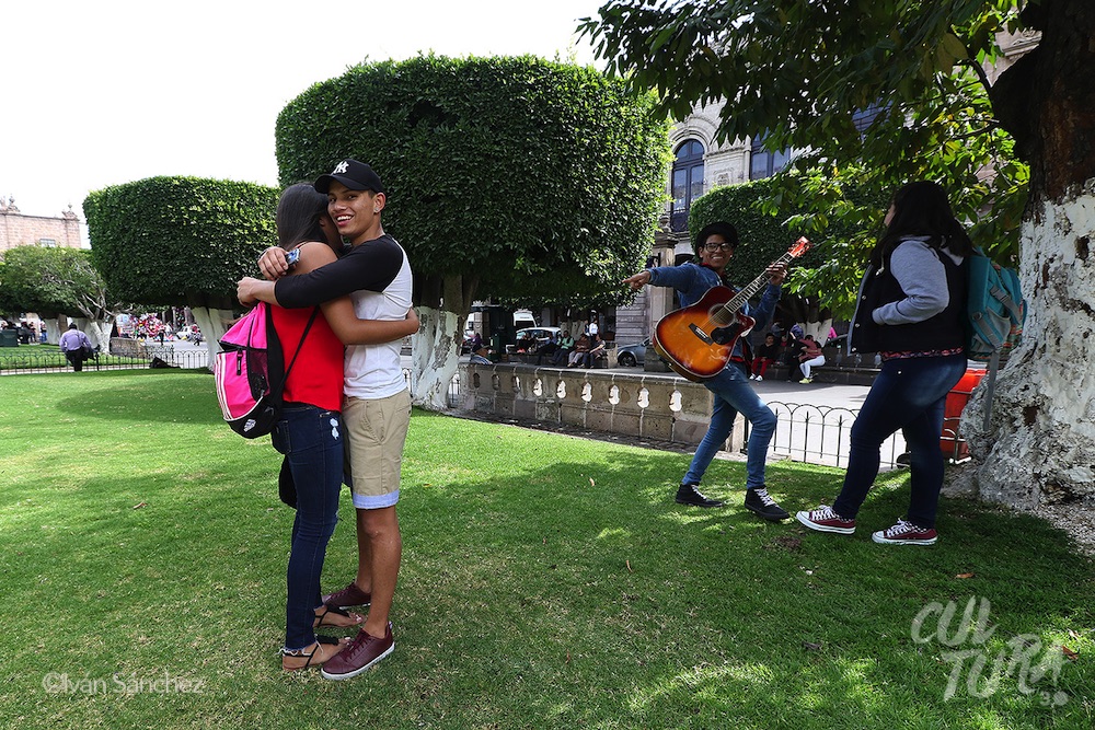 Parejas pasan apresuradas, otras se demuestran su amor por medio del contacto físico, con algún obsequio y hasta con una serenata en medio de uno de los jardines. Todos se ven alegres y muy enamorados, a algunos otros se les nota cierta ansiedad.