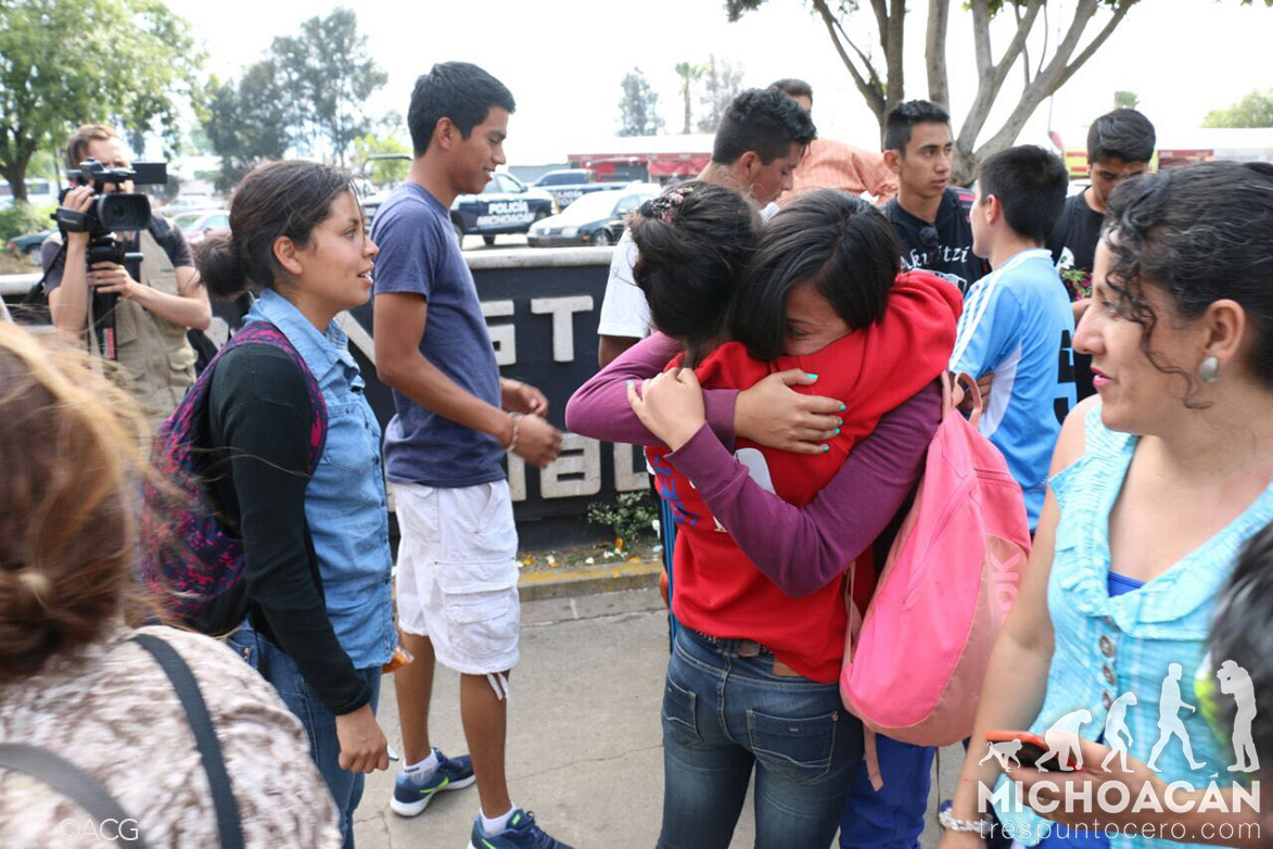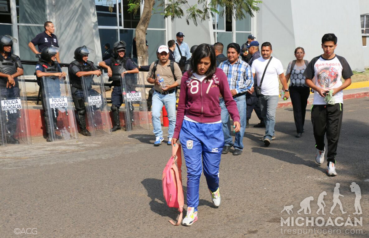Morelia, Michoacán.-Fueron liberados los cuatro normalistas detenidos esta mañana cuando apoyaban la protesta de la Coordinadora Nacional de Trabajadores de la Educación (CNTE) en el salón Michoacán del Centro de Convenciones, luego de que al lugar arribaría el secretario de Educación Pública, Aurelio Nuño Mayer.