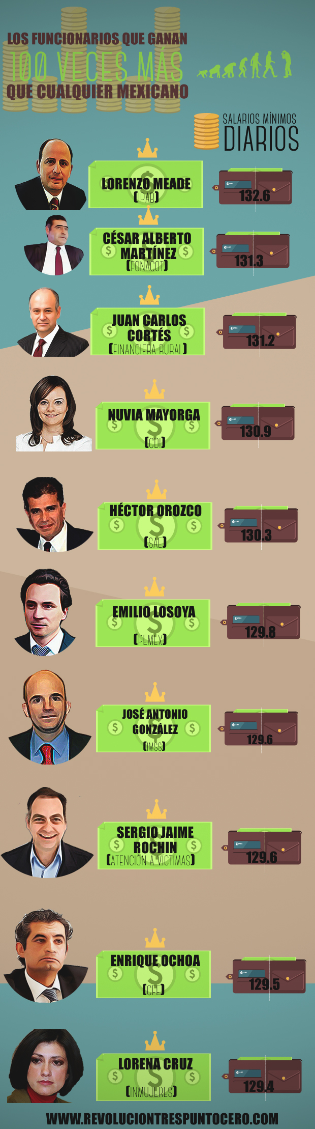 Los funcionarios que ganan 100 veces más que cualquier mexicano #Infografía