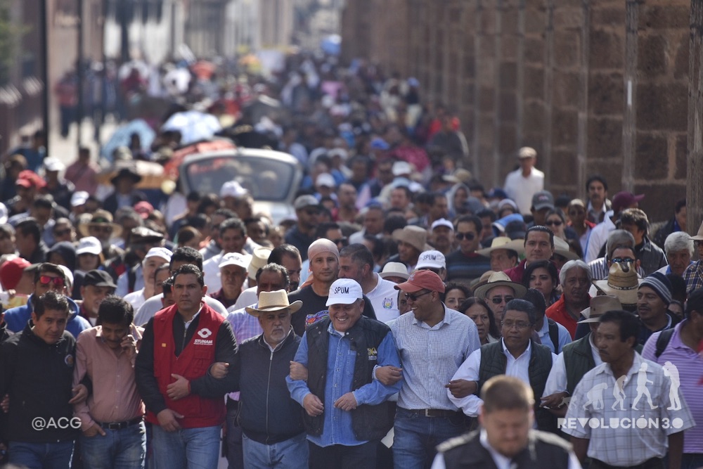 “Hasta los Tigres del Norte les pagan, cuando nos deben a todos, este gobierno nos has robado a todos”, dice el orador que al lado del auto encabeza la marcha que parte desde la salida a Mil Cumbres y en cuya avanzada se ven los rostros de los líderes sindicales convocantes a la movilización y que se esperaba, “histórica”, pero no, no fue tal, si de acuerdo a los anuncios previos, hubieran asistido los más de 50 sindicatos” que integran el llamado Frente Estatal por la Defensa del Salario y la Estabilidad Laboral.