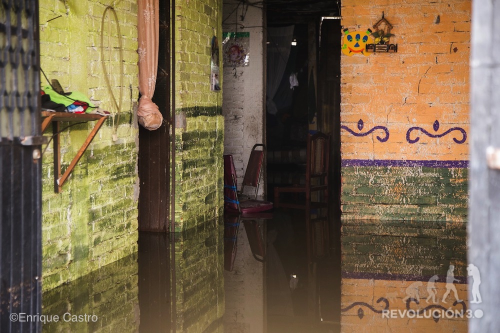 Cruz, saca el agua de su casa a cubetadas junto a su familia, sin embargo, esto no funciona porque el agua “sale de abajo” y vuelve a llenar las habitaciones. El pidió ayuda a la sociedad con ropa y comida y algunos respondieron, la situación es difícil en ese lugar. Por ahora viven 10 personas en la segunda planta de la casa, de igual forma una pareja de adultos mayores detrás de su casa, a los cuales por medio de una escalera se les ayuda con despensa.
