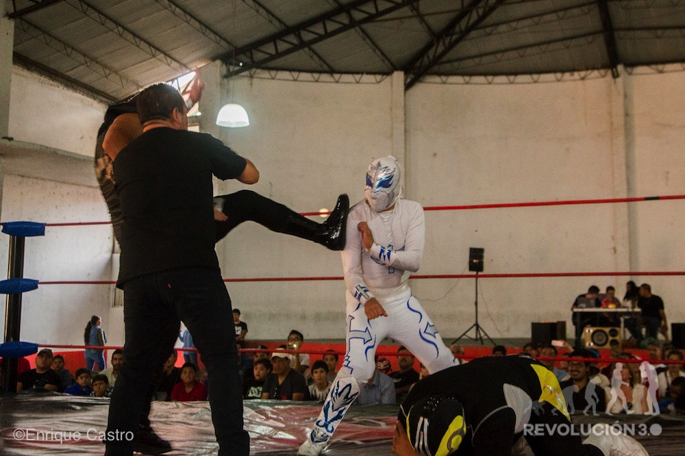 El, es sordomudo y por medio de Liz Vega (interprete del lenguaje de señas y amiga del luchador) pide ayuda y agradece lo que le han llevado. Ahora, dice, su lucha es ahí, y con todo mascara limpia y seca cosas. Él, es luchador amateur en Morelia y lo hace en medio del silencio en un ambiente de ruido y “mentadas de madre”. Sin embargo, nunca se niega a subirse al cuadrilátero de manera gratuita cuando se trata de una buena causa; la semana pasada lo hizo para ayudar a una escuela de palitos en Paracho, Michoacán.
