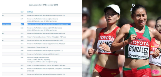 La marchista mexicana, ganadora de una medalla olímpica, María Guadalupe González dio positivo en un examen antidoping a un esteroide anabolizante.