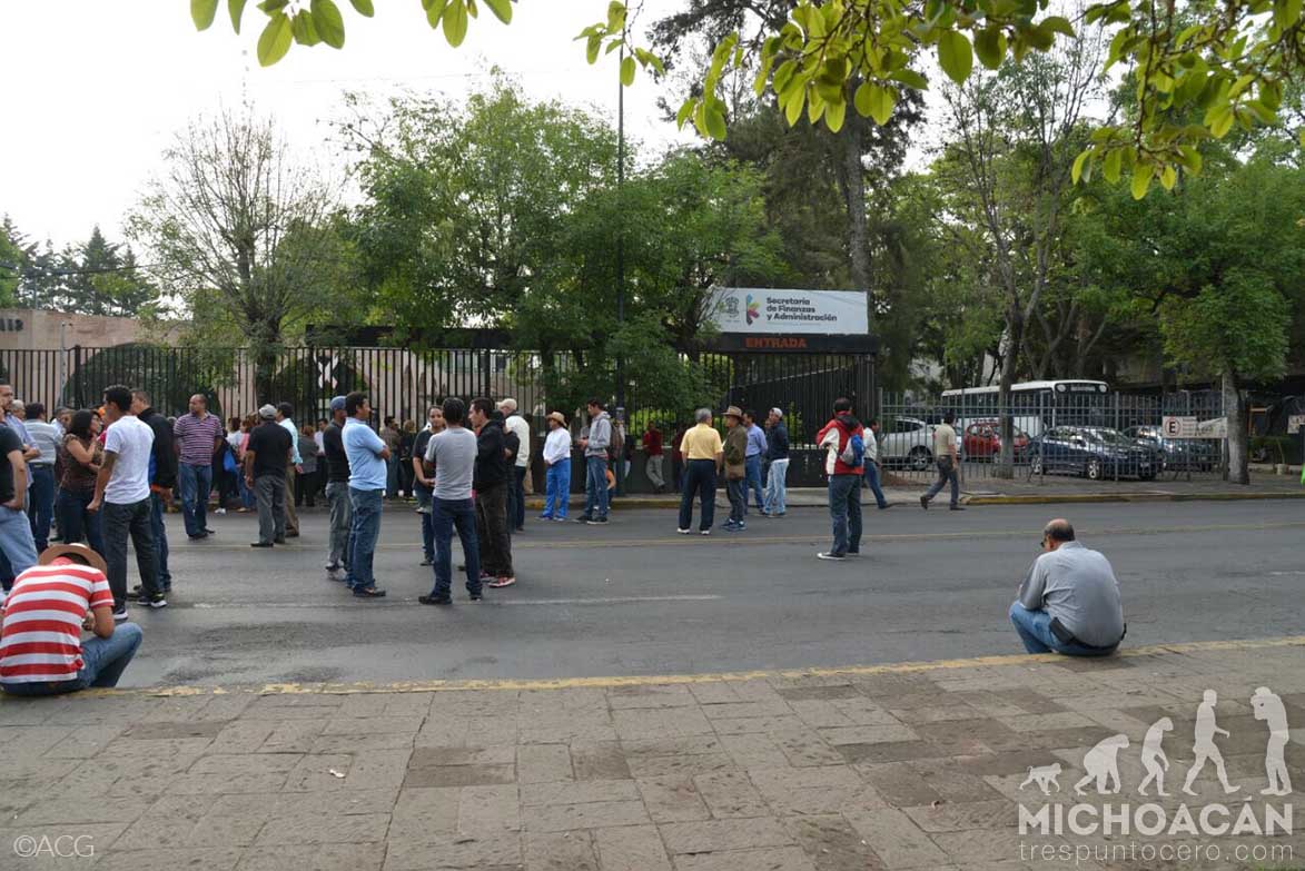 En la protesta se encuentran docentes de los Tecnológicos de Huetamo, Zitácuaro, La Piedad, Jiquilpan y Lázaro Cárdenas, quienes están a la espera de que alguna autoridad los atienda y les programen una fecha para la entrega del pago.