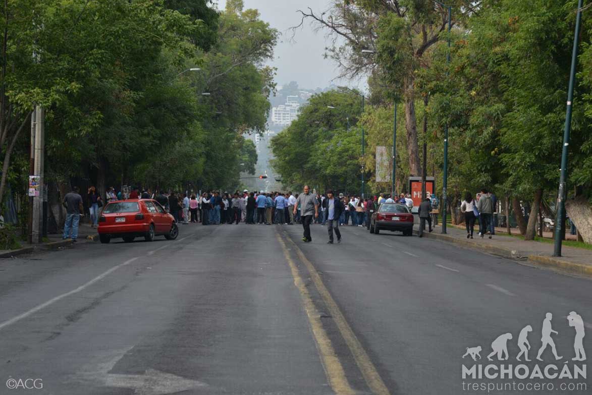 Morelia, Michoacán.-Un grupo de maestros de diversos Tecnológicos del estado mantienen una manifestación frente a la Secretaría de Administración y Finanzas, y bloquean la Calzada Ventura Puente para exigir pagos atrasados desde el mes de marzo.