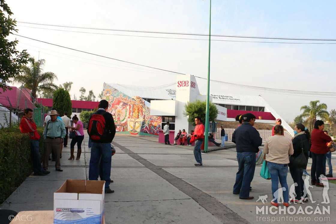 Morelia, Michoacán.-Trabajadores de la Educación mantienen tomadas las instalaciones de la Secretaría de Educación en el Estado (SEE) para exigir la salida del director de Primarias, Marcelino Juan Mancilla Millán.