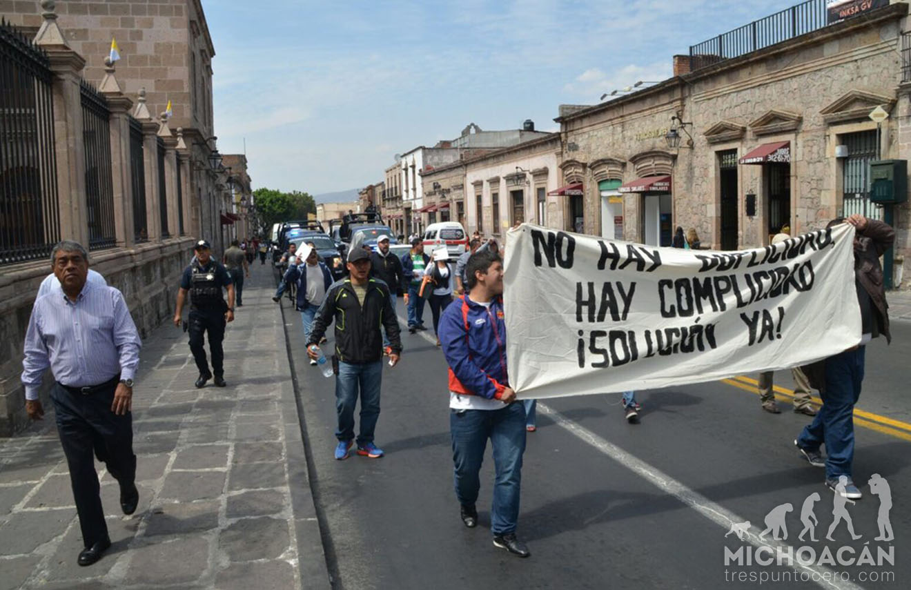 Los profesores han realizado diversas movilizaciones durante las últimas dos semanas en la capital michoacana, entre ellas el plantón en Casa de Gobierno y la Secretaría de Educación del Estado.