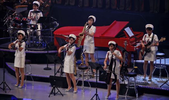 “Es el cumpleaños de nuestra madre, el Partido de los Trabajadores”, reza el letrero luminoso que preside el escenario. Cerca de 15.000 personas que componen el “todo Pyongyang” aguardan ya en los asientos del Polideportivo Ryugyong, en sus uniformes militares o trajes más formales. Un centenar de soldados del coro militar norcoreano están alineados sobre el proscenio. Tras ellos, una pantalla gigante muestra imágenes de lanzamientos de misiles. Un grupo de muchachas, vestidas exactamente iguales, agarra sus instrumentos. Está a punto de comenzar el concierto de las chicas de Moranbong, el grupo musical más popular de Corea del Norte.