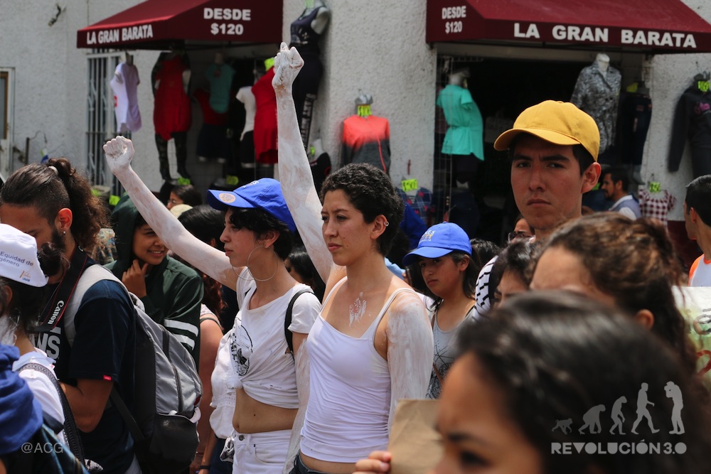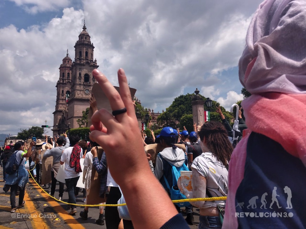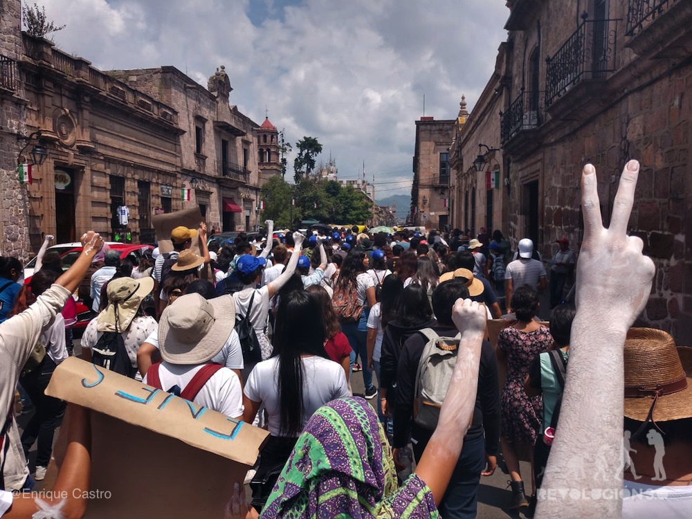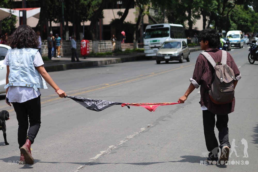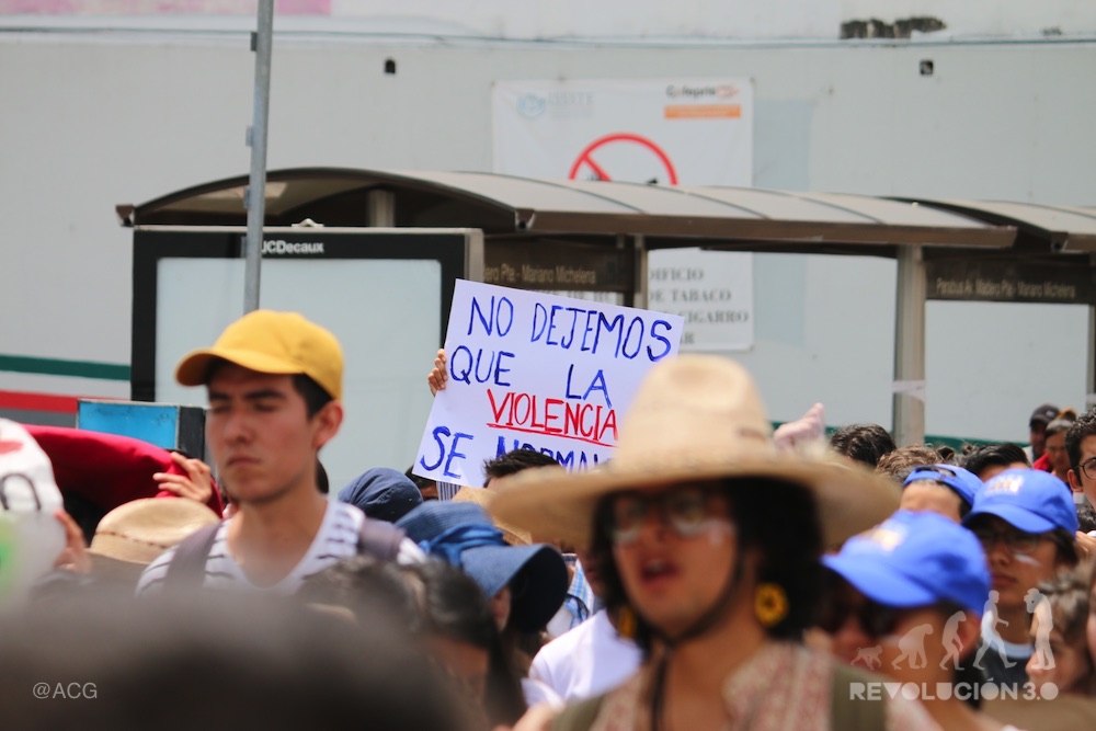 Con mantas y consignas que condenaron la agresión de porros en contra de 200 jóvenes en el Colegio de Ciencias y Humanidades Azcapotzalco, los universitarios de Morelia señalaron debilidad de las autoridades de la UNAM ante los hechos, al igual que recordaron a los 43 normalistas de Ayotzinapa.