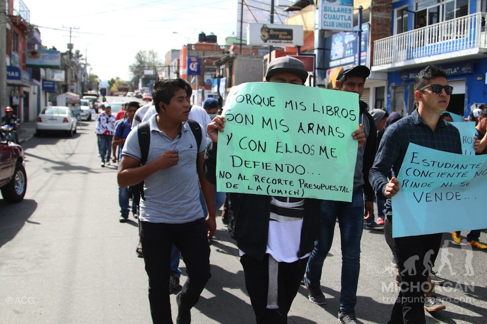 “Por un presupuesto digno y un no rotundo a las medidas unilaterales, será la manifestación de los universitarios nicolaitas este miércoles por la mañana en el Centro Histórico”, señala Serna en el comunicado, el cual indica que los dirigentes y el rector coincidieron en que “se trata de un momento histórico para la Universidad Michoacana, en el que sus sectores se unen en defensa de la universidad pública”.