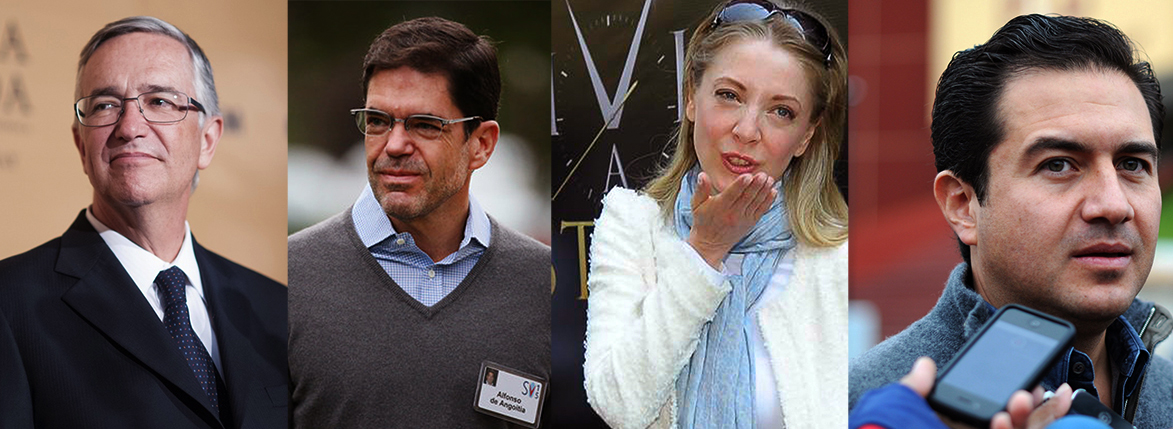 La actriz Edith González; Guillermo García White, exejecutivo de Grupo Televisa y exvicepresidente de la Confederación Norteaméricana, Centroamérica y el Caribe de Fútbol (Concacaf); Omar Yunes Márquez, empresario e hijo del candidato del PAN, Miguel Ángel Yunes Linares, y Emilio Lozoya, ex director de Petróleos Mexicanos.