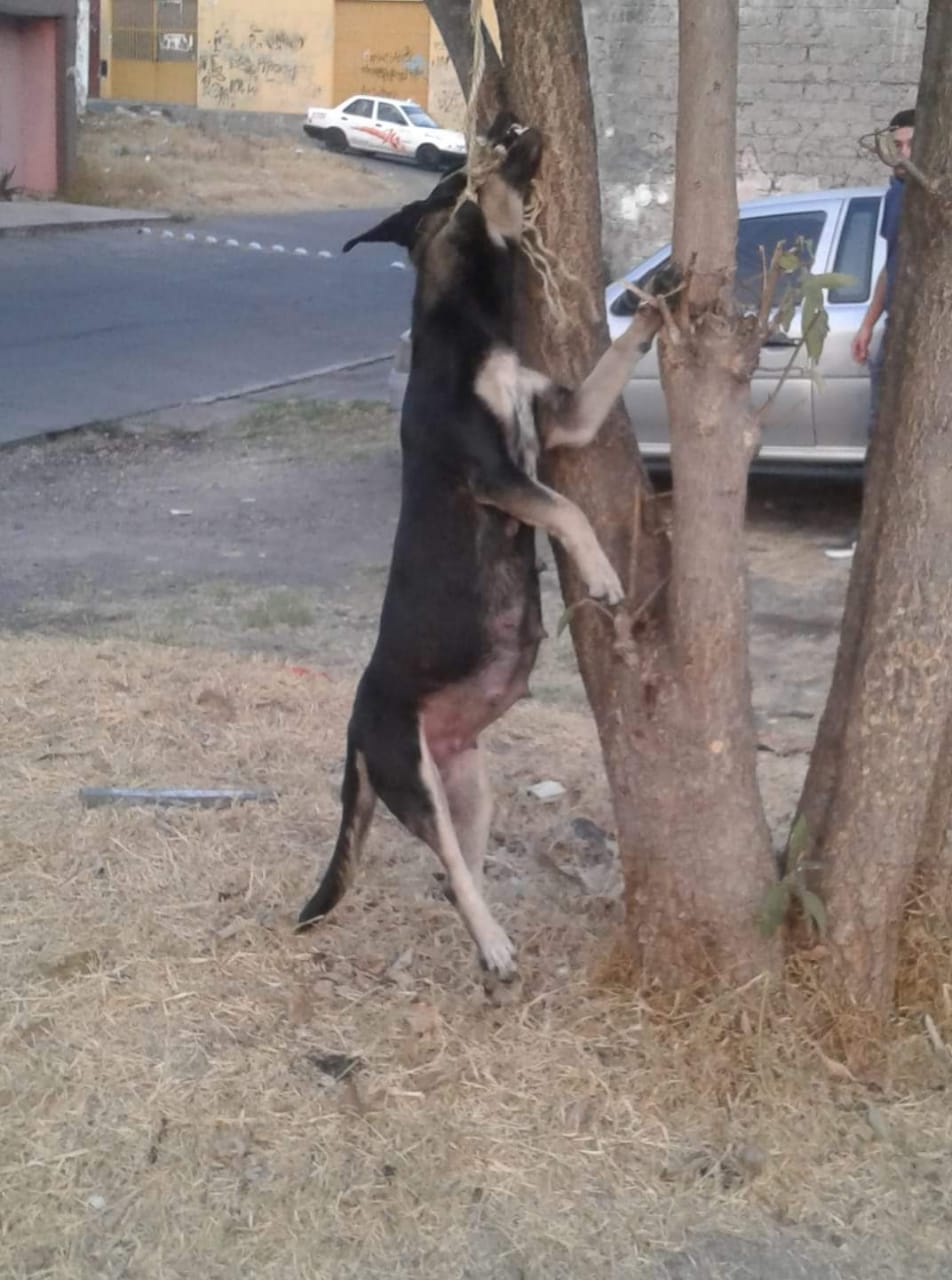 Una usuaria del grupo “Animales Perdidos en Morelia”, reportó la mañana de este lunes el hallazgo del cuerpo del can que pendía de un árbol en la vi a pública.