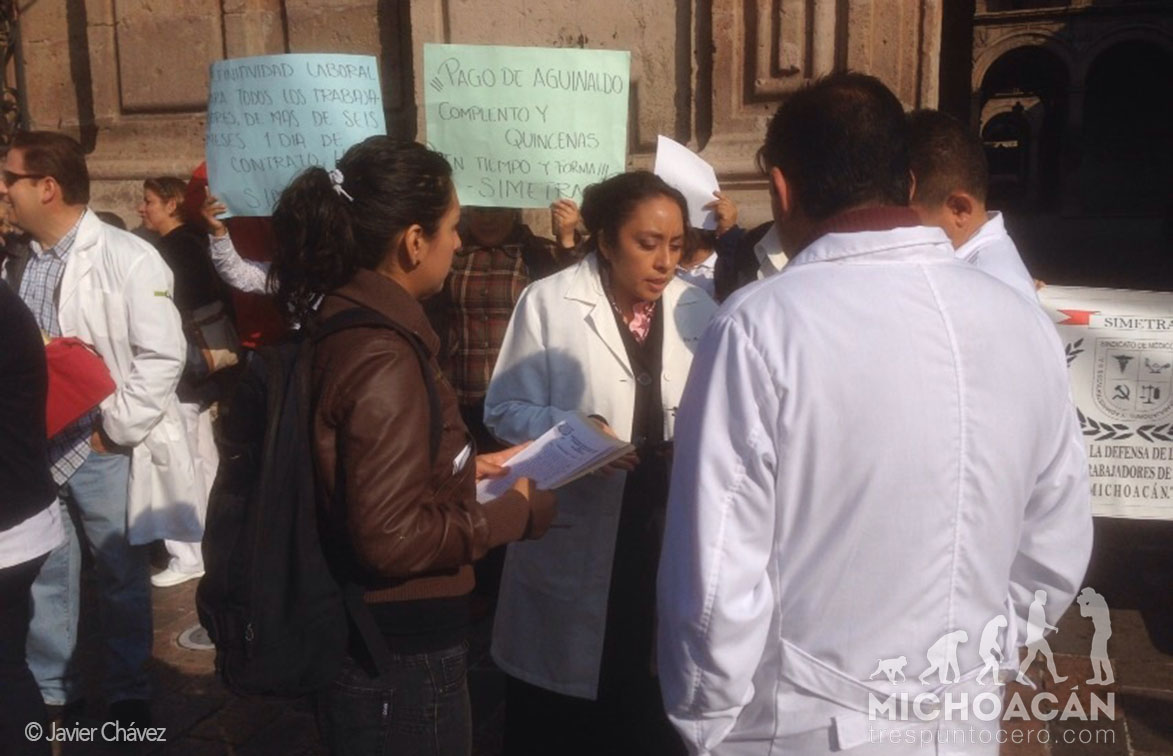 Los 50 médicos y enfermeras se encuentran a la espera de ser atendidos por Jara Guerrero, cabe mencionar que en estos momentos será nombrado el nuevo secretario de Gobierno en Michoacán.