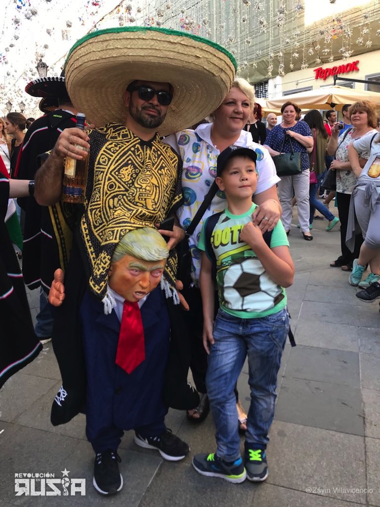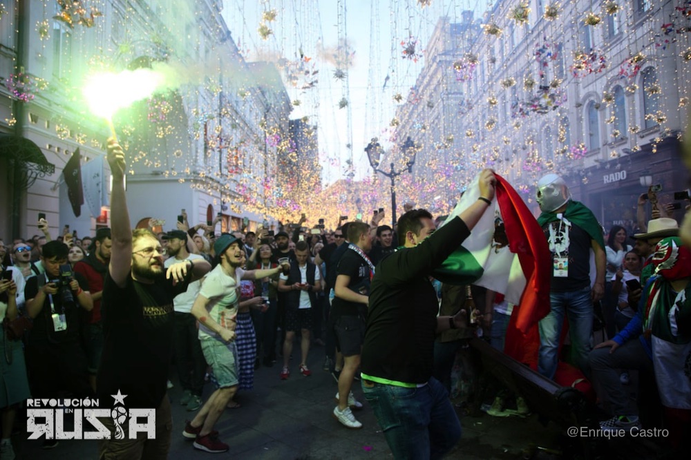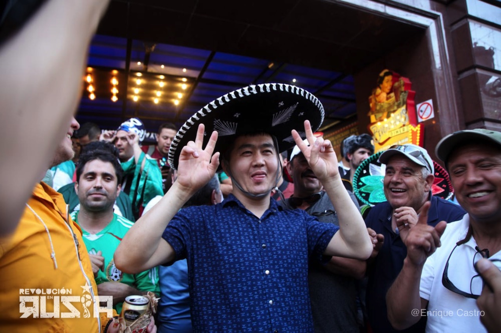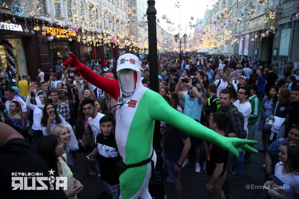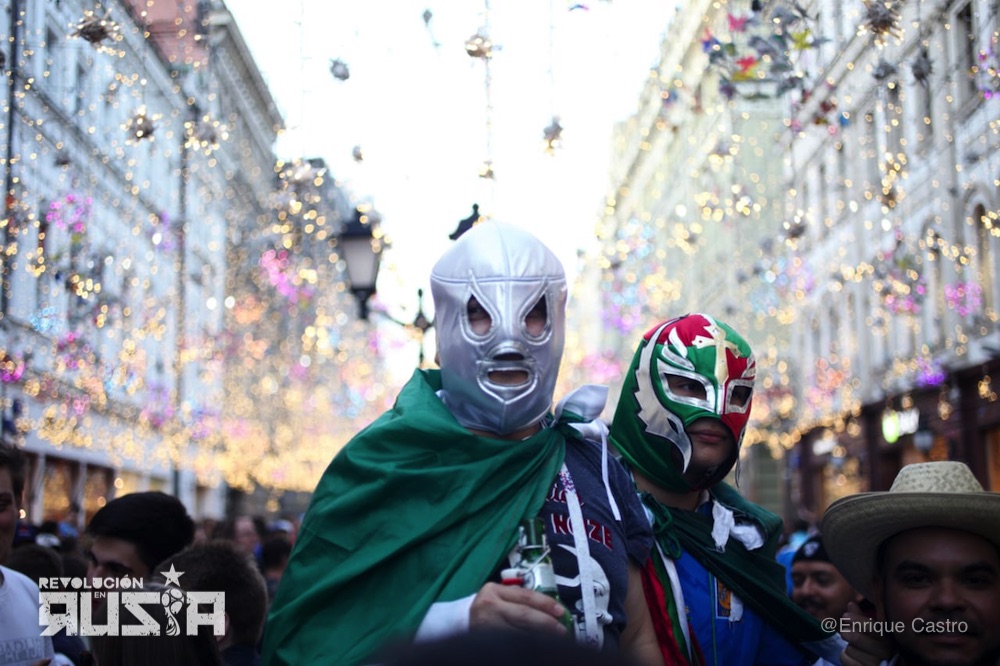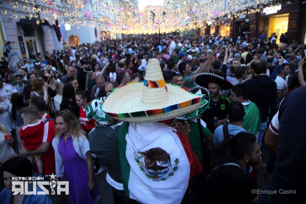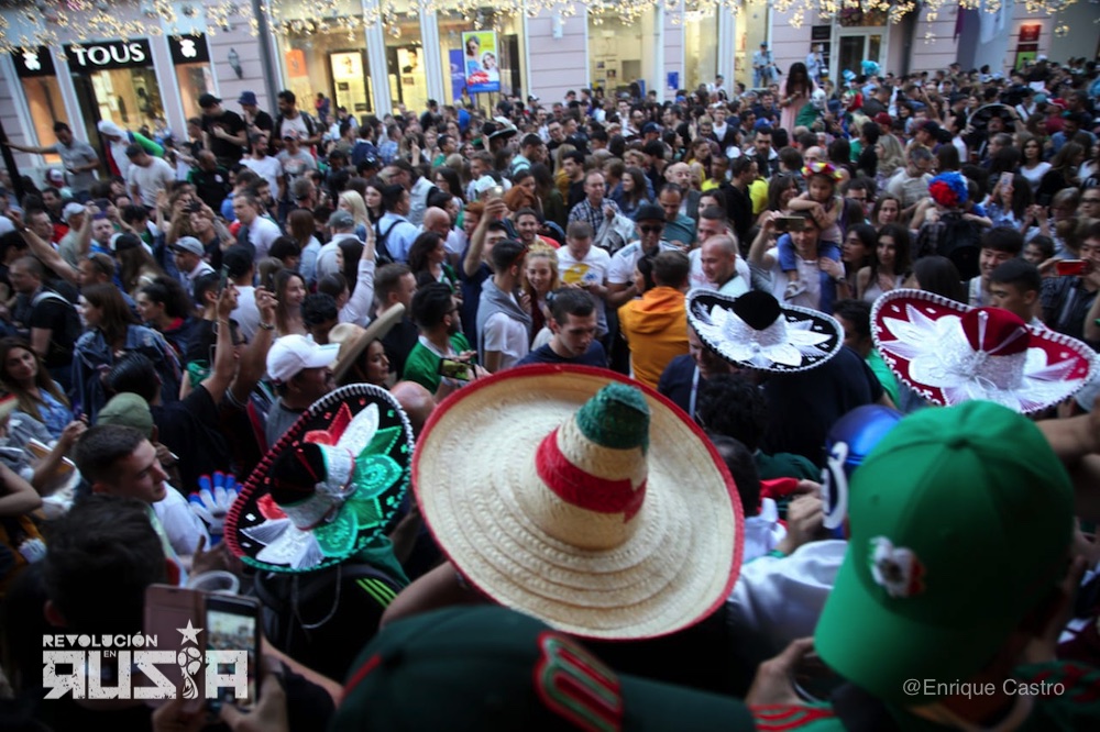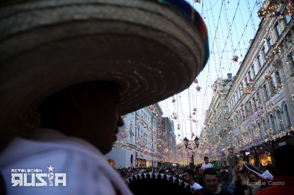 A donde voltees en Moscú el verde y blanco de las chamarras y playeras de México está presente, también los sombreros de mariachi.