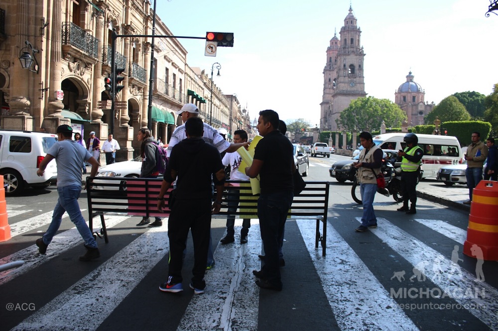 Moradores de las casas del estudiante de la Universidad Michoacana, iniciaron el bloqueo de la avenida Madero para demandar la entrega inmediata de la ayuda alimenticia que debe proveer Rectoría.