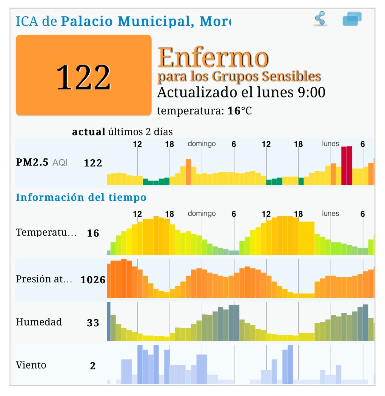 Desde las 9 de la mañana, se reportó uno de los indicadores más altos y se espera que con el paso de las horas los indicadores incrementen, según la lectura de la misma estación.