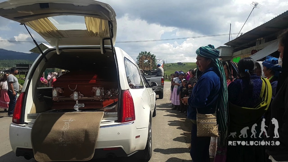 Sobre el féretro, las mujeres con sus vestimentas tradicionales lloran y gritan lamentos en su lengua indígena.