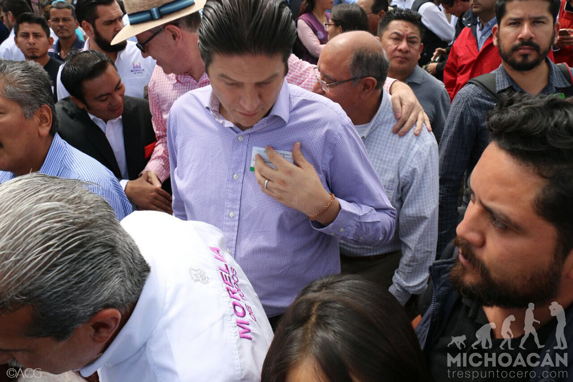 Morelia, Michoacán.-Le negaron el acceso al presidente municipal de Morelia, Alfonso Martínez Alcázar, al evento encabezado por Enrique Peña Nieto quien hará entrega de maquinaria para el campo. El acto se lleva a cabo en el Recinto Ferial de la capital michoacana.