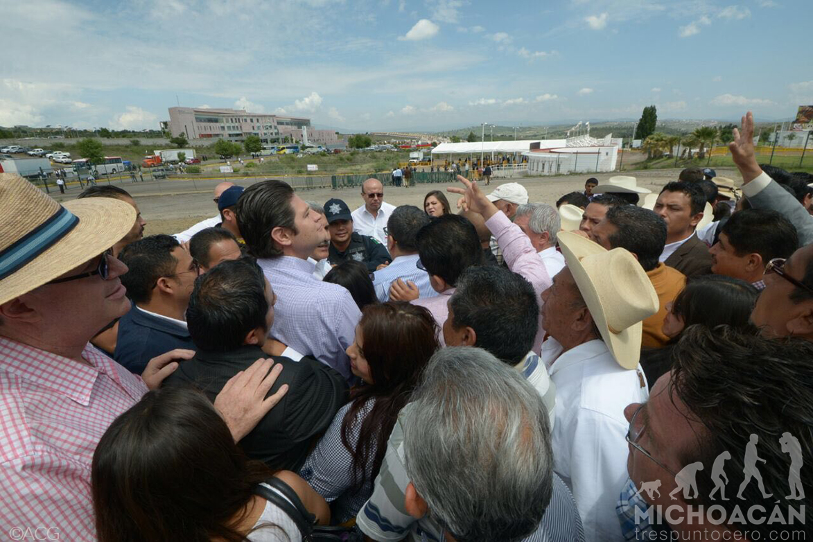 Y es que el evento está organizado por el Estado Mayor quienes dispusieron de tres accesos diferentes para ingresar al acto “Michoacán a toda Maquina”, en el cual se entregarán alrededor de 500 tractores a agricultores y se anunciará una inversión de 250 millones de pesos para el campo.