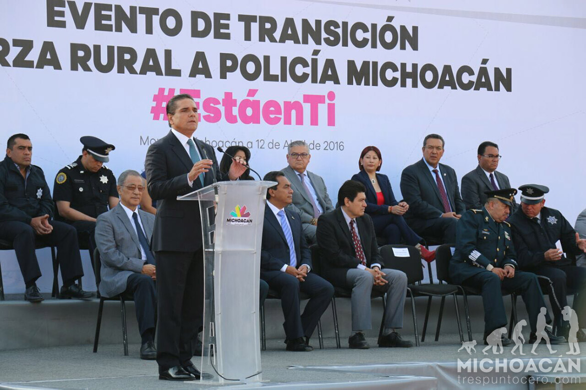 Morelia, Michoacán.-El Gobierno de Michoacán seguirá trabajando para garantizar la estabilidad y la seguridad en Michoacán, declaró el titular del Ejecutivo Silvano Aureoles Conejo en el marco del evento de transición de la Fuerza Rural a la Policía Michoacán.