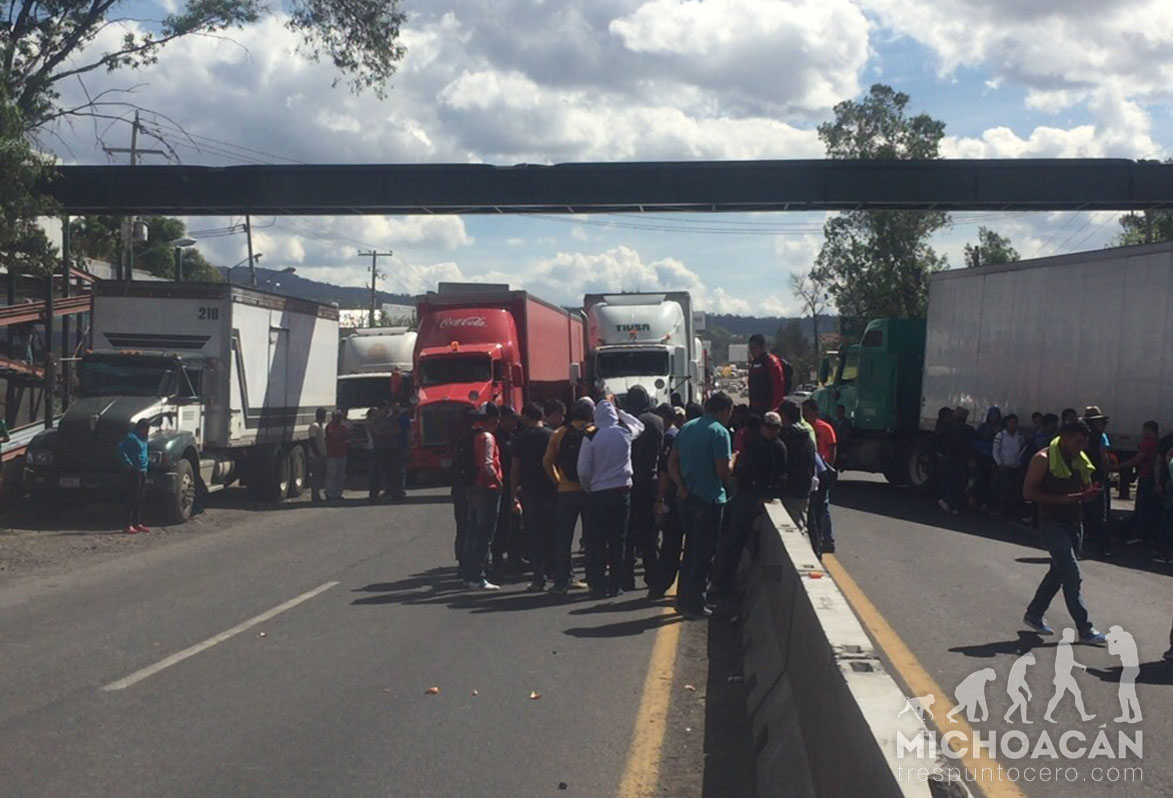 Morelia, Michoacán.-Estudiantes de la Normal Rural de Tiripetío mantienen bloqueada las vialidades en la salida a Pátzcuaro, a la altura del fraccionamiento Xangari, para protestar en contra del gobierno de Salvador Jara Guerrero.