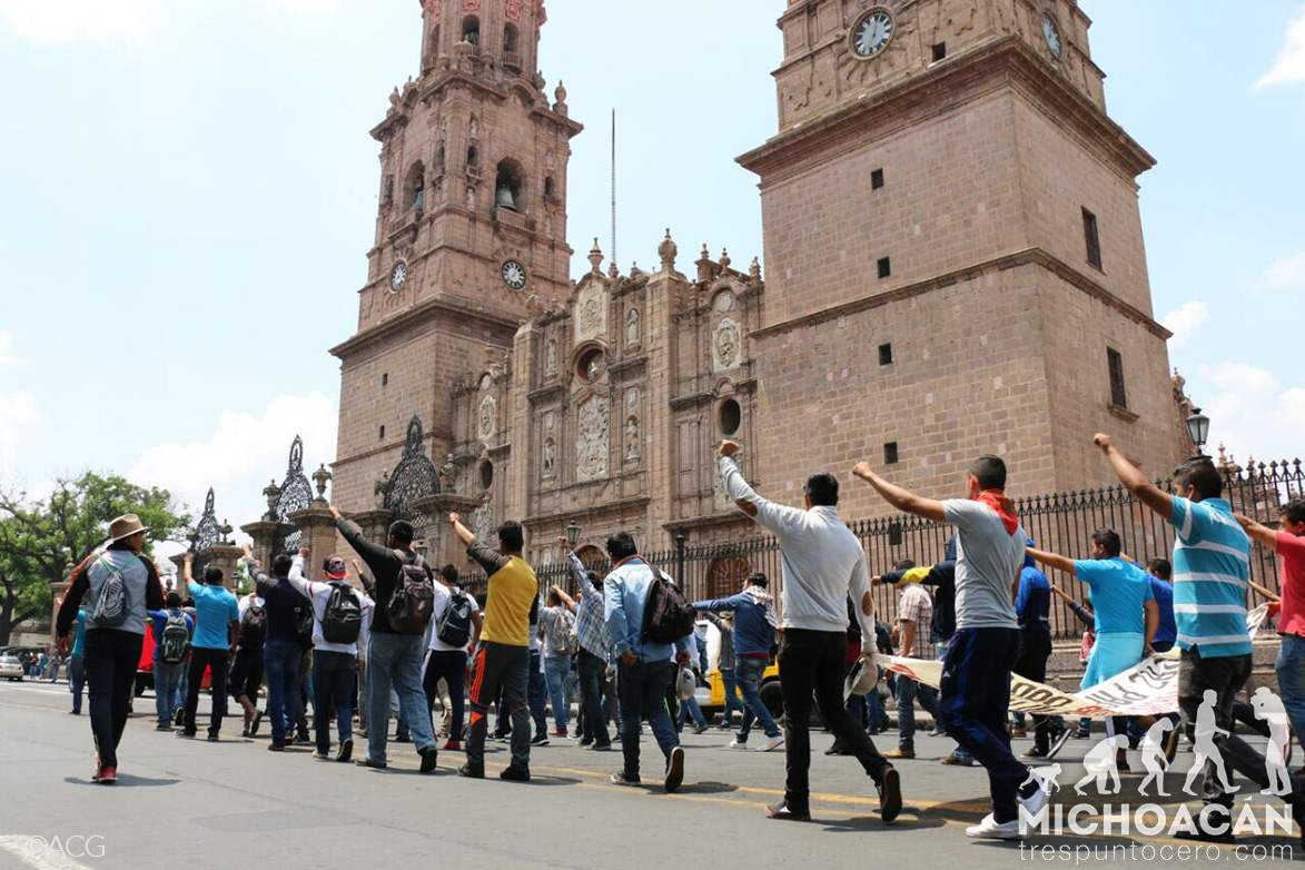 Desde las 9:00 horas se reunieron en la salida a Pátzcuaro, frente al Fraccionamiento Xangari, para de ahí partir al Palacio de Gobierno.