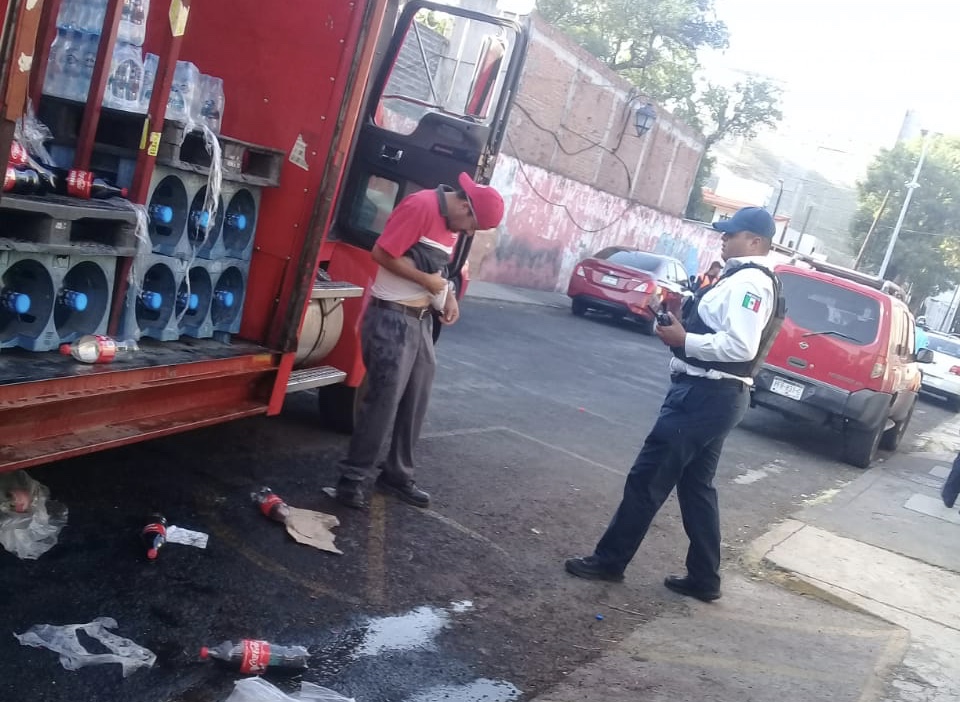 Minutos antes de las 9:00 horas, corporaciones policiales fueron alertadas de que en la calle Gertrudis Bocanegra, esquina con Acueducto, estudiantes de la Escuela Normal Urbana Federal “Prof. Jesús Romero Flores”, se apoderaban del producto de un camión de la empresa Coca-Cola.