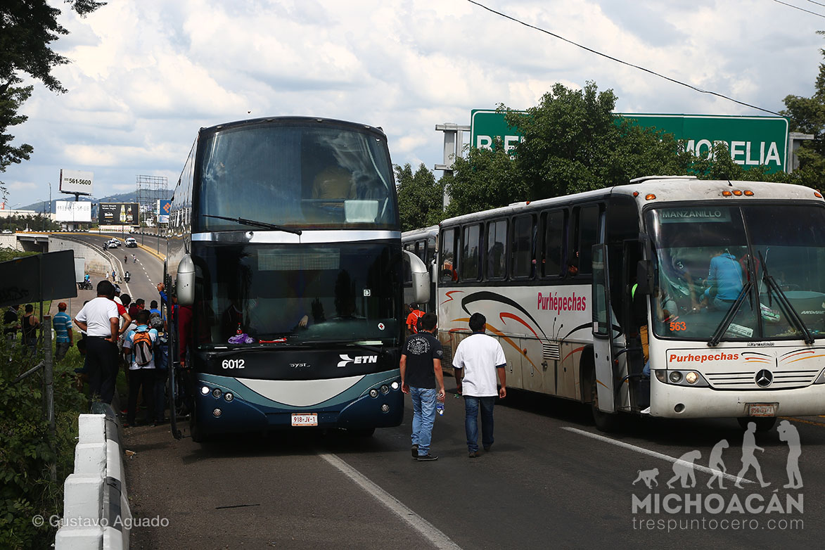 Las acciones de los estudiantes iniciaron desde las 8:00 horas de la mañana cuando retuvieron cinco autobuses y un camión comercial, los cuales fueron llevados a la escuela de Tiripetío, cabe hacer mención que el día de ayer fueron retenidos otras tres unidades de la línea Purhépecha.