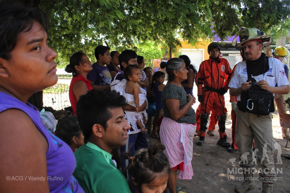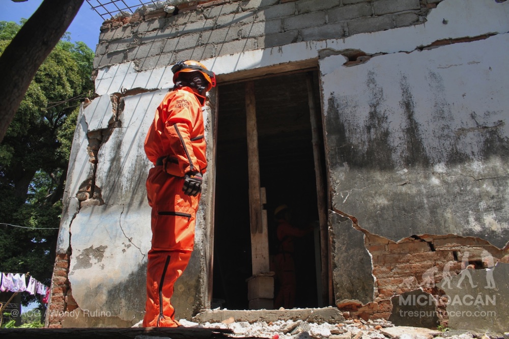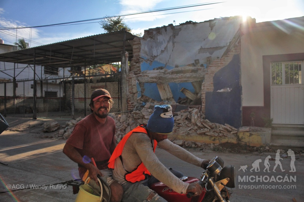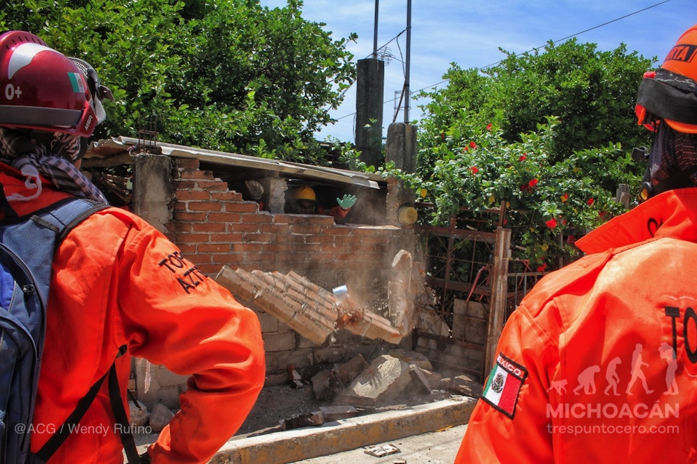 Entre los topos, se encuentran dos michoacanos, Miguel Ángel Nava ‘Jalecillos’, y Jesús Efraín Rubio ‘Efra’, este último líder innegable de su equipo, llevan una semana en Juchitán, evaluando daños, ayudando, rescatando, tumbando, asesorando, junto a otros. Efra, recuerda que desde niño, este impulso por ayudar no se ha separado de él. Los topos, son voluntarios muy apreciados por la población, saben que vienen aquí con recursos propios, “las casetas se tienen que pagar aunque venga uno a ayudar”, comenta ‘Efra’ entre risas con sus otros compañeros. Los niños despiden a los topos con abrazos, entre fotos y saltos cada que vez que los ven dirigirse a un lugar.