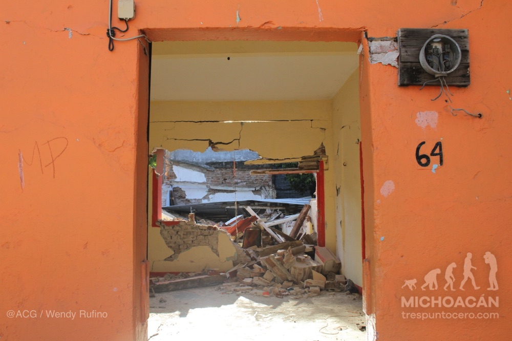 Adelina Santiago Robles, pide ayuda a los topos para sacar el resto de sus cosas de una casa ya apunto del derrumbe. Junto a toda su familia duermen en el patio. Otra casa en el centro, totalmente derrumbada, una mujer avisa que ahí murió una señora que vivía sola, no alcanzó a salir.