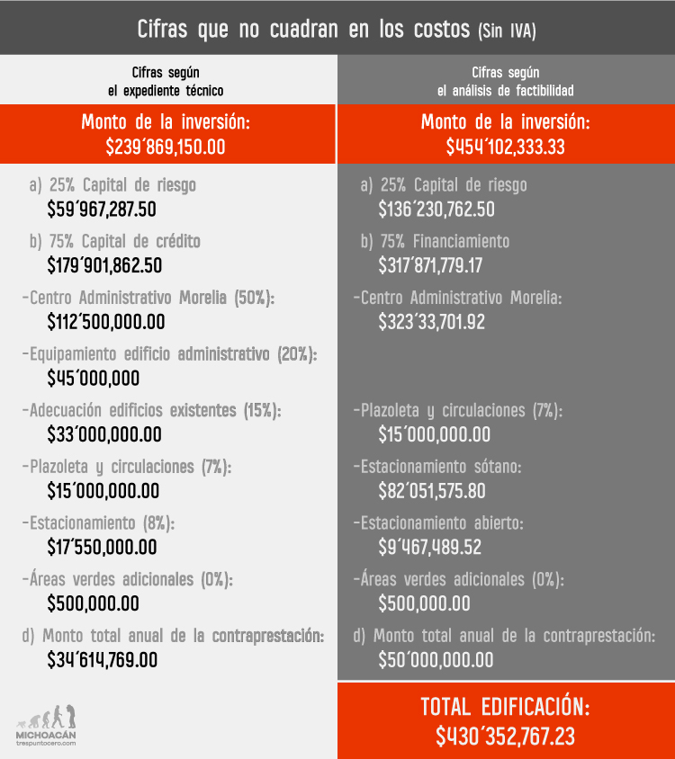 Morelia, Michoacán.-Por una obra que se prevé tenga una inversión de 423.2 millones de pesos, el municipio de Morelia acabará pagando 1.5 mil millones de pesos al cabo de 29 años que se prevé dure el contrato con la empresa que preste los servicios para la construcción y operación del Centro Administrativo Morelia (CAM).