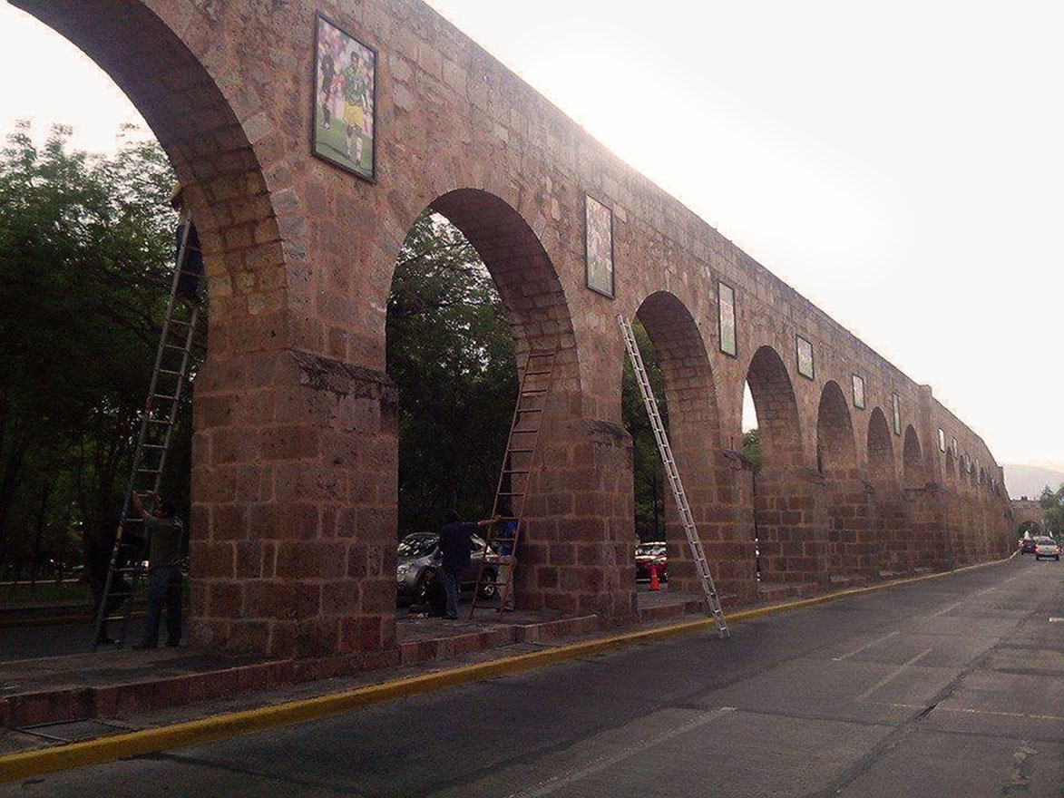 Morelia, Michoacán.-Luego de las fuertes críticas que recibió el Ayuntamiento de Morelia, que encabeza Wilfrido Lázaro Medina por haber instalado una exposición fotográfica sobre los mundiales de fútbol en el Acueducto, uno de los monumentos históricos más representativos de la ciudad, finalmente decidió retirarlos este martes.