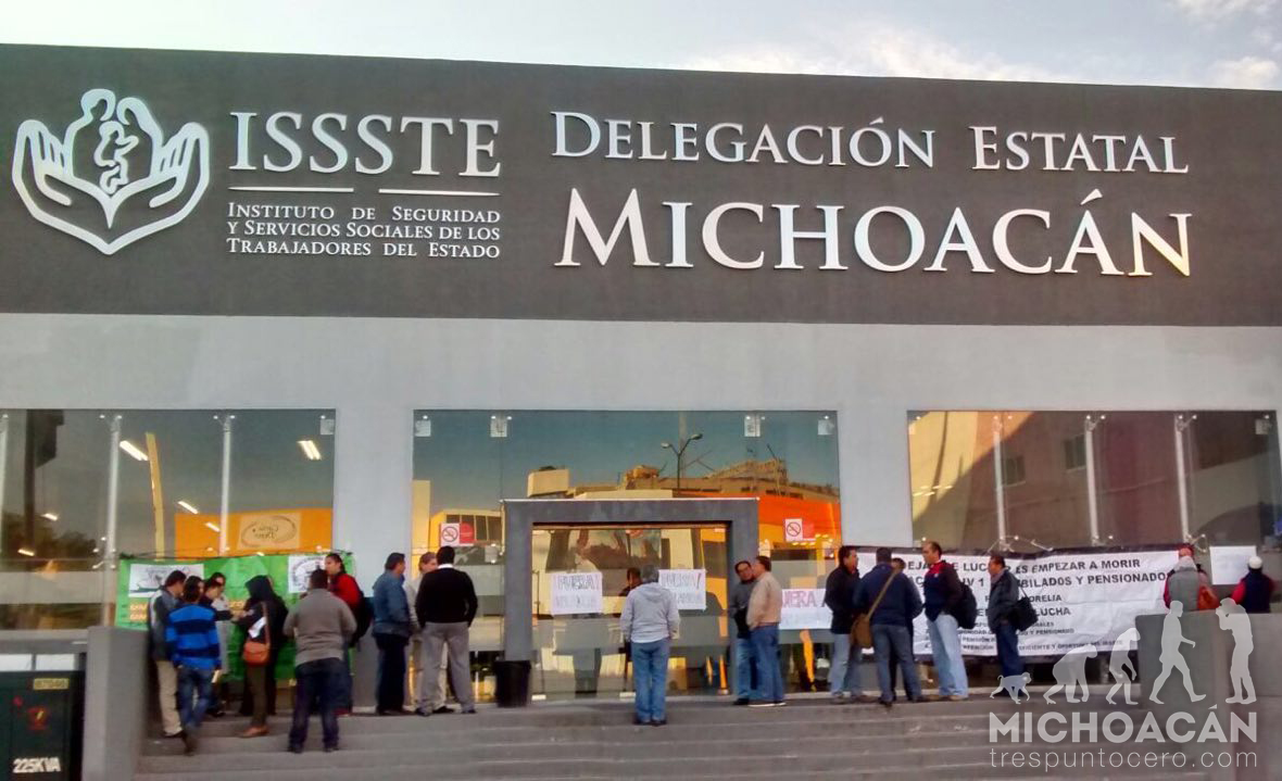 Morelia, Michoacán.-Los jubilados y pensionados adheridos a la Coordinadora Nacional de Trabajadores de la Educación (CNTE) se manifiestan en la Delegación del ISSSTE, en demanda de mejores condiciones en el servicio médico que les brindan.