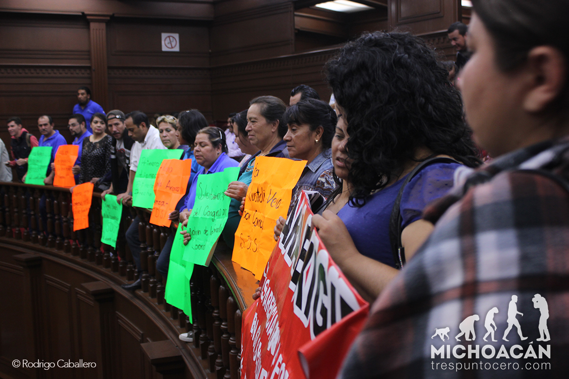 Morelia, Michoacán. Tras 17 días consecutivos de huelga, diversos trabajadores del Sector Salud en Michoacán realizaron una protesta en plena sesión del Congreso del Estado.