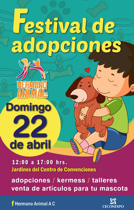 Morelia Michoacán. Con el objetivo de fomentar la cultura de adopción de mascotas y el fomento del respeto a los derechos de los animales la asociación civil Hermano Animal te invita a que asistas al Festival de Adopciones que se realizará este domingo 22 de abril en los jardines del Centro de Convenciones de Morelia (CECONEXPO) de las 12 a las 17 horas.