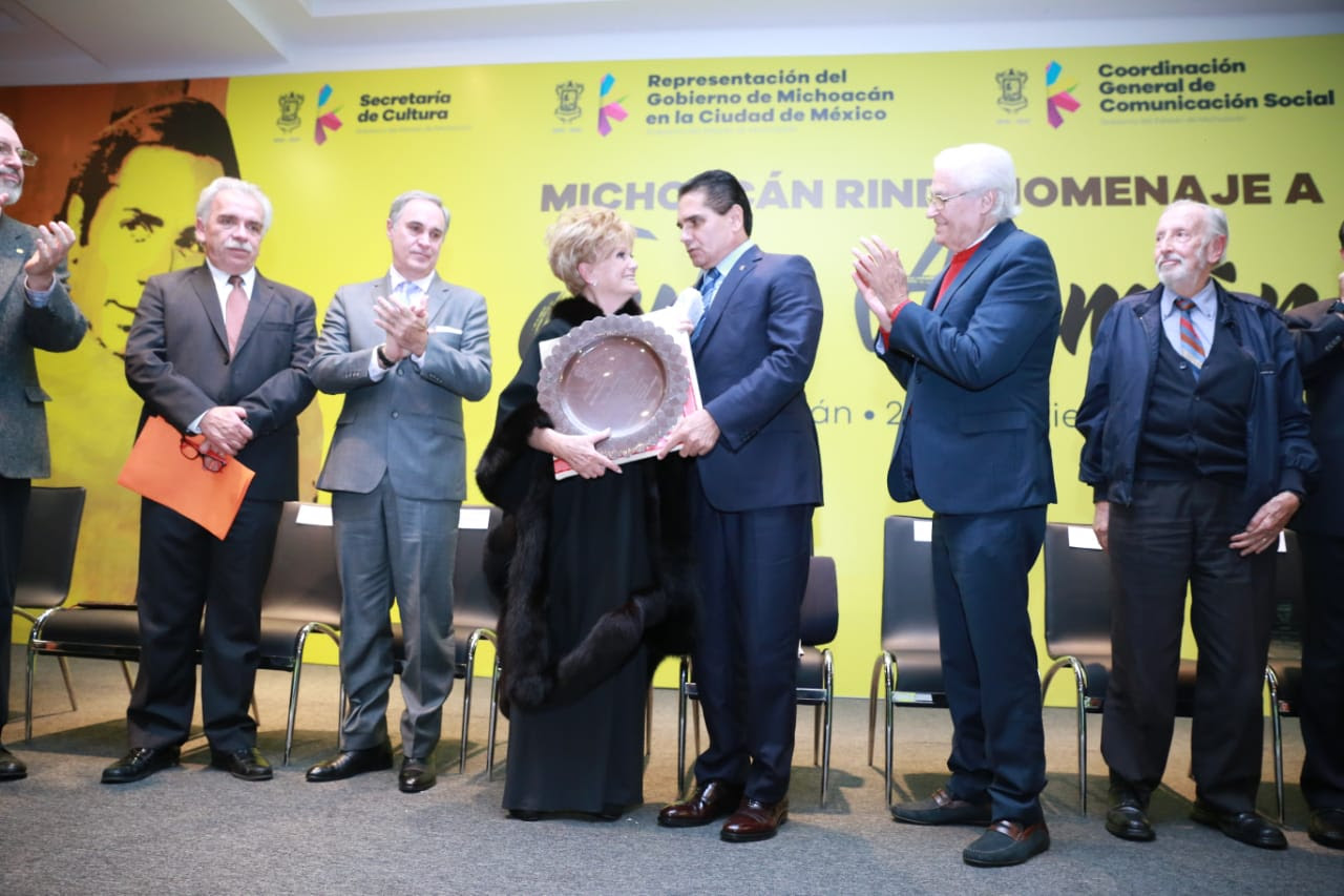 En este homenaje, el titular del Ejecutivo Estatal otorgó un reconocimiento especial a la viuda, De La Paz Gotes Martínez por la destacada trayectoria y contribución de su esposo a la cultura, al cine de México y por poner en alto el nombre de Michoacán, con cariño a 85 años de su natalicio.