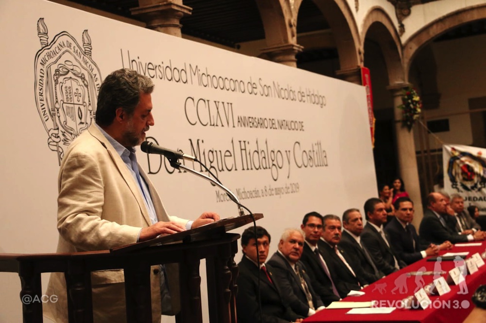 Sin ningún pronunciamiento del funcionario federal en su discurso como orador oficial, ni a lo planteado por los manifestantes ni sobre la situación de la Universidad, Guillermo Campillo, miembro del MDJEDAU, le entregó un expediente donde fundamentan sus demandas, en las que señalan que los recortes presupuestales impuestos por el Congreso estatal en los últimos tres años, son un importante detonante del déficit financiero en la UM, además de la falta de transparencia y rendición de cuentas así como “privilegios de una reducida cúpula”, según expresa el FDUP, con el desconocimiento a los compromisos y piden a los gobiernos federal y estatal “atiendan sus obligaciones constitucionales, hagan respetar los Derechos Humanos, respeten la Autonomía Universitaria y dejen de intervenir en la vida de la Universidad Michoacana de san Nicolás de Hidalgo”.