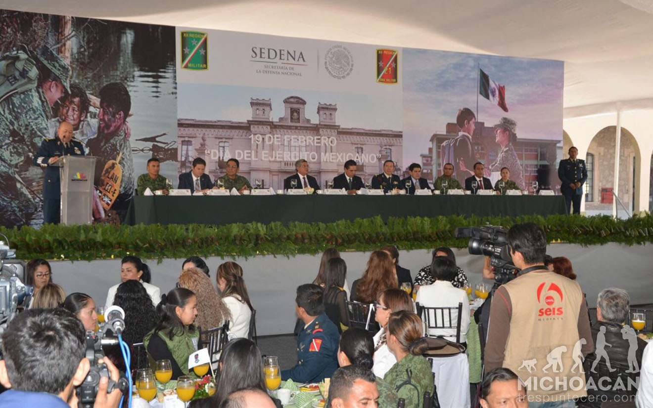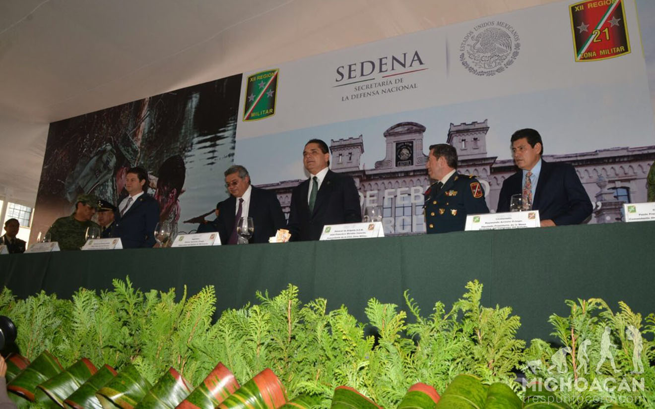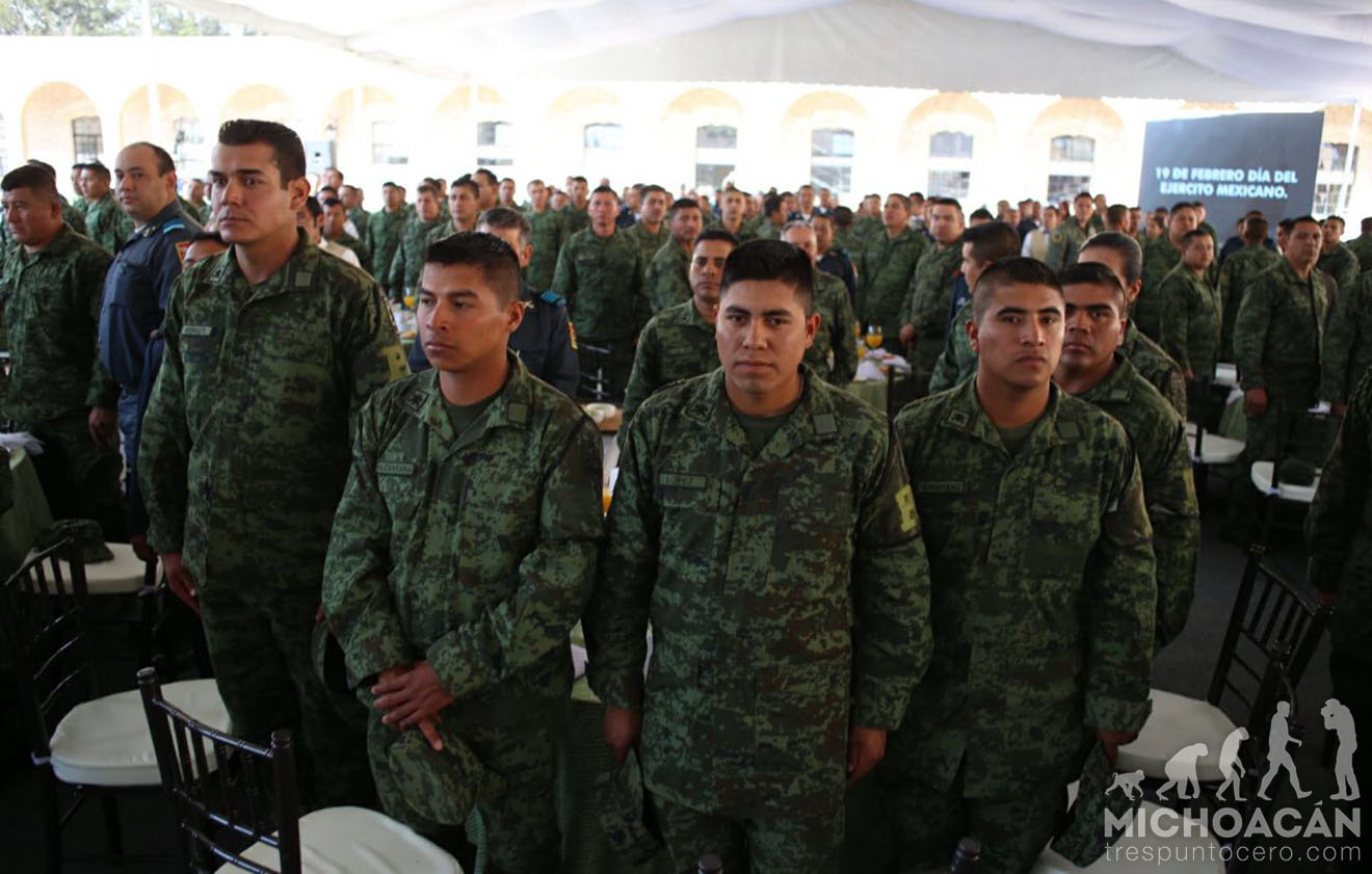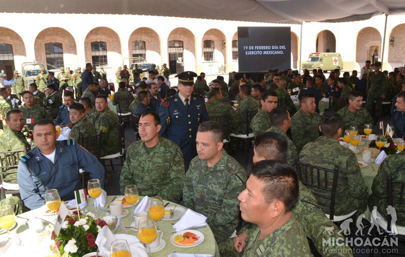 Ante la presencia de integrantes del Ejército Mexicano, el mandatario agradeció a las Fuerzas Armadas por preservar la seguridad, devolver la paz y la tranquilidad a los michoacanos y manifestó que en esta fecha se celebra la valentía, coraje y dignidad de los soldados, así como su ejemplo de servicio y entrega al interés superior de la Nación.