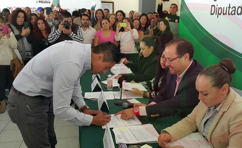 Su registro lo realizó a las 12:00 del día, por lo que su papá, Jorge Molina Bazán, que es el secretario del Sindicato de Empleados Municipales, Administrativos y Conexos de Morelia (SEMAC), sacó a los trabajadores en horarios laborales para que fueran a apoyar a su hijo.