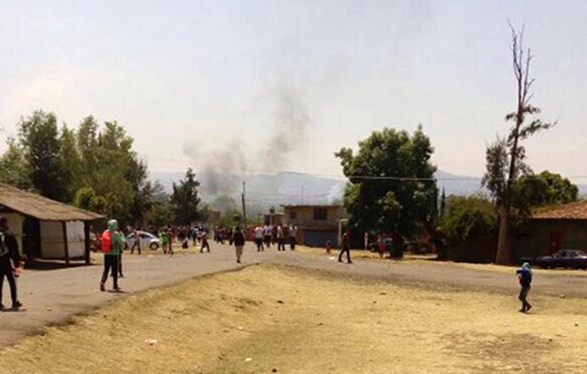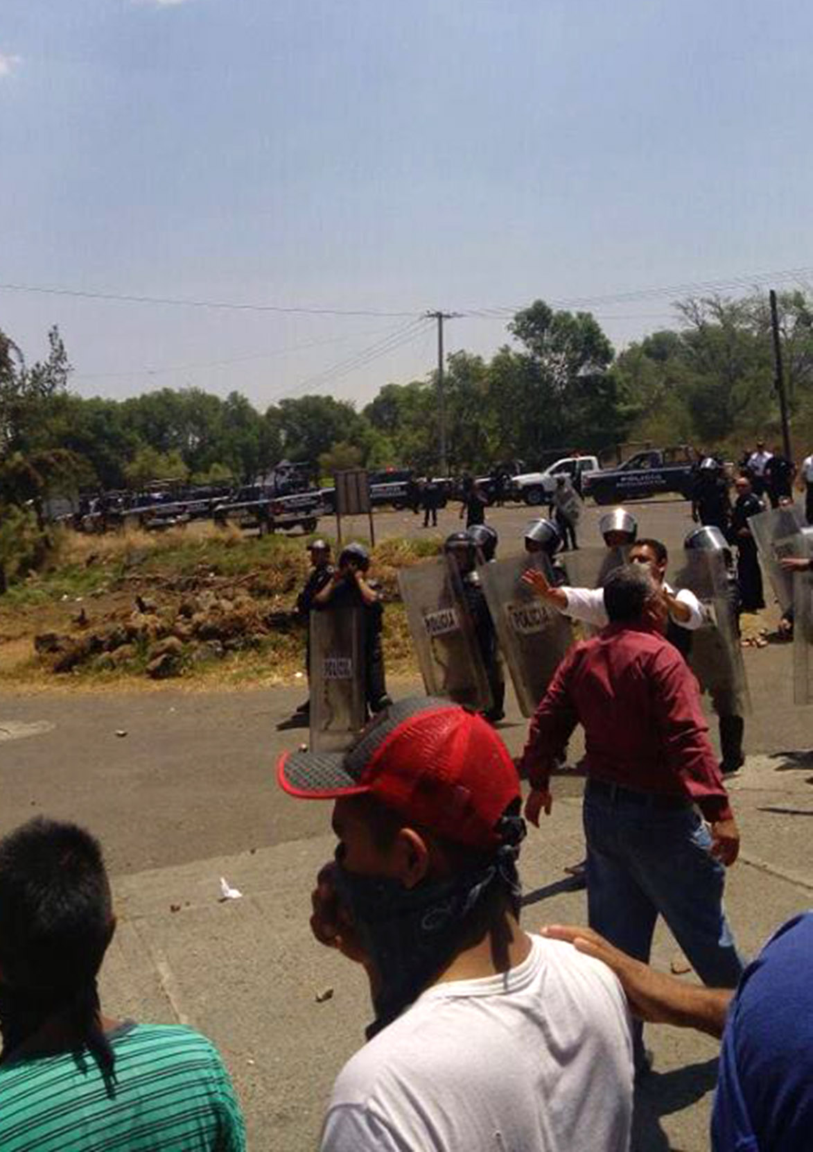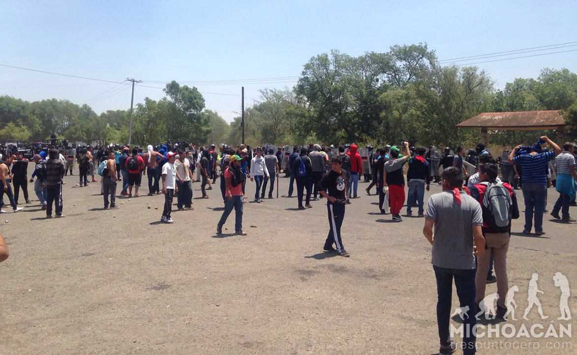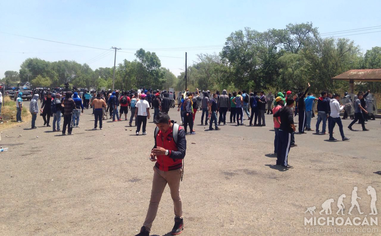 Morelia, Michoacán.-Se registró un enfrentamiento entre estudiantes normalistas y elementos del Grupo de Operaciones Especiales (GOE), luego de que los estudiantes amenazaban con impedir el paso del tren en Tiripetío para exigir el pago de becas.