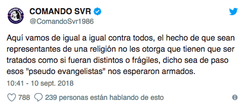 Luego del enfrentamiento, los barras del Comando Svr se pronunciaron en su cuenta de Twitter mandando una advertencia a los miembros de la iglesia.