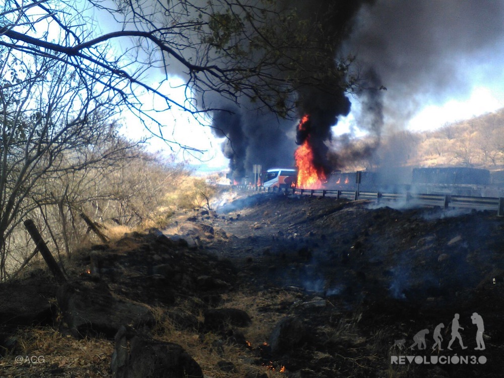 Apatzingán, Michoacán.- Luego de los bloqueos carreteros reportados la mañana de este miércoles en al menos cuatro puntos de la región Tierra Caliente de Michoacán, suman siete los vehículos incendiados por civiles armados, cifra que podría ascender en próxima horas, pues usuarios de la autopista Siglo XXI han reportado el despojo de unidades en las cercanías de la caseta Santa Casilda.