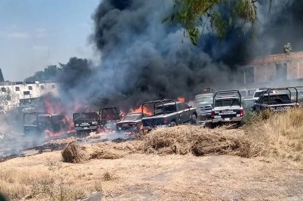 Se incendian patrullas de la Policía Michoacán en estacionamiento de Cuartel Valladolid